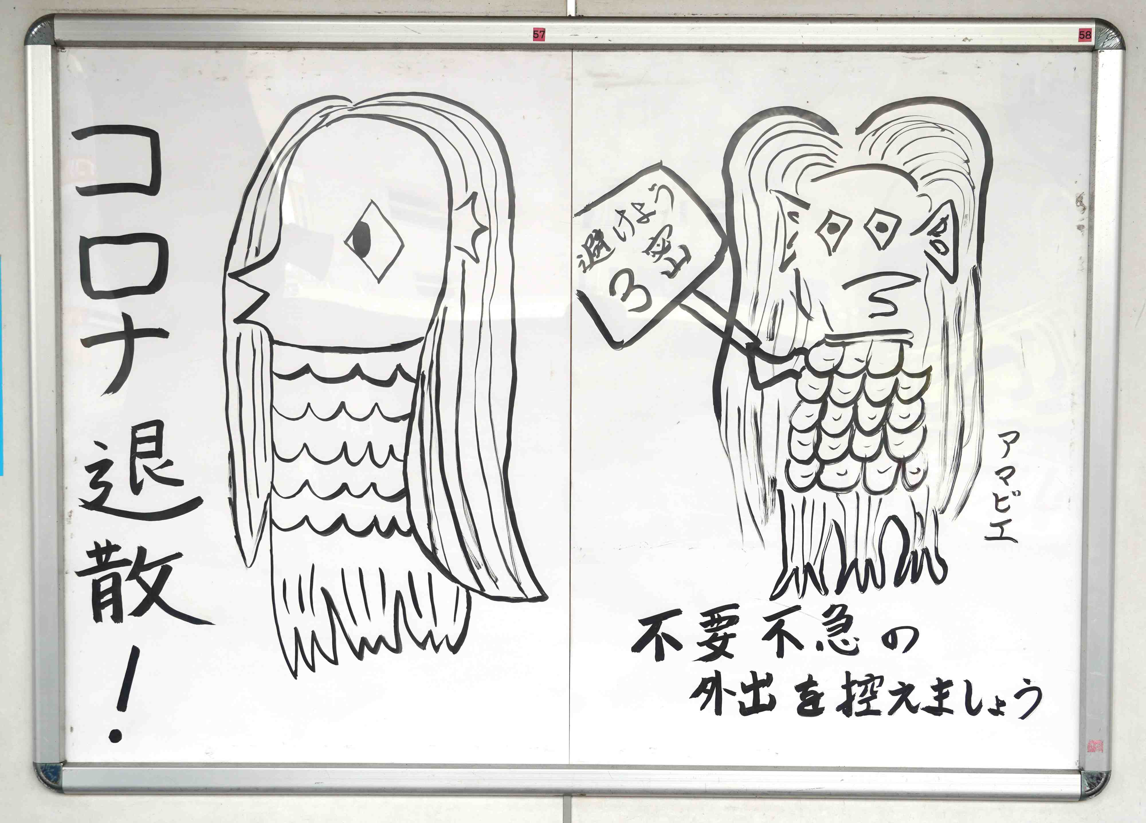 - Amabie: Part sea creature and part bird, the creature was originally a Yokai (omen, ghost) to pray for the end of epidemics, and was happily revived in light of COVID-19. It sparked SNS campaigns to share the positivity of the message, as well as a copious flow of goods and amulets to wish for a speedy recovery from the pandemic, in Japan and globally.