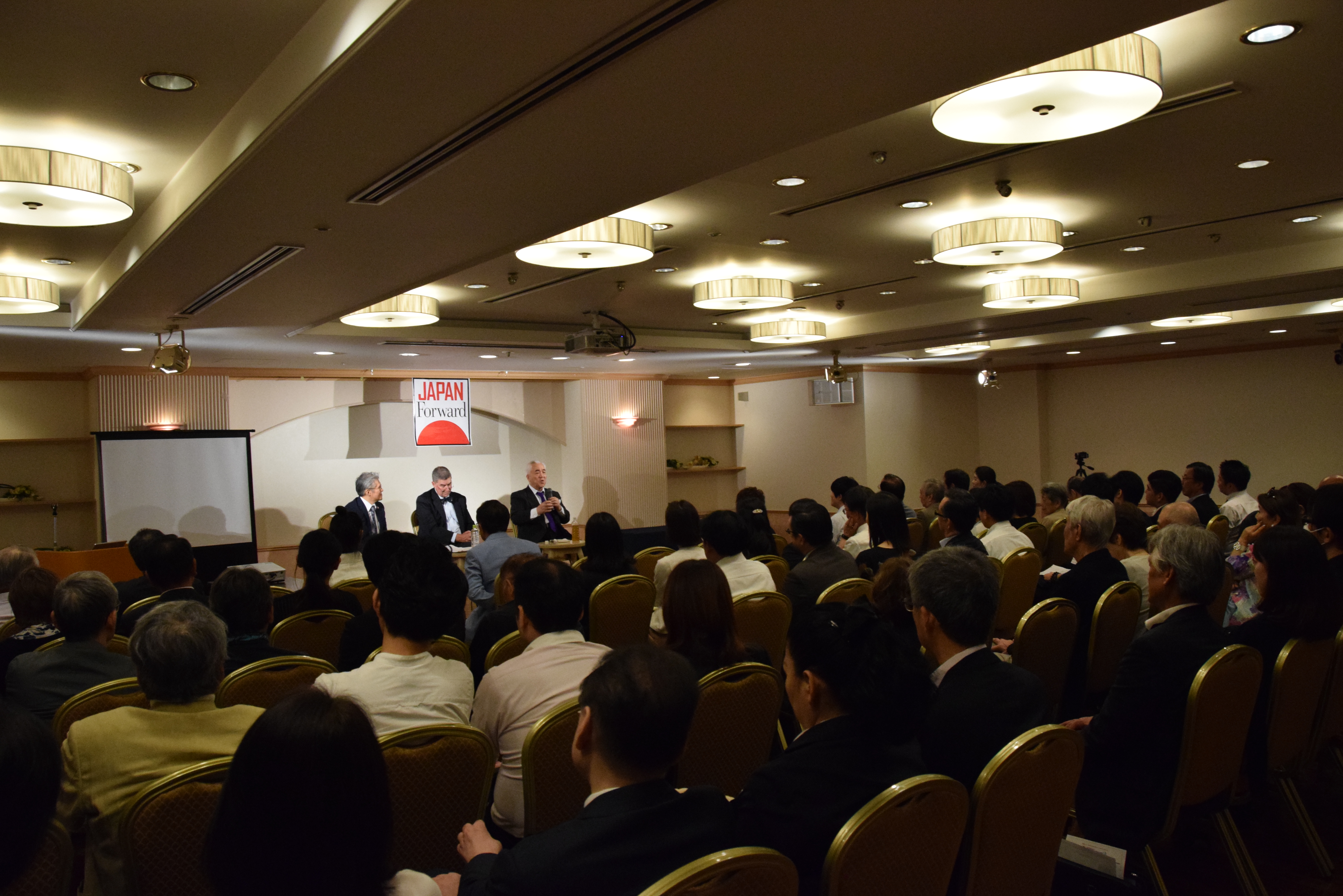 The forum was a full house held at Ivy Hall, a Shinonome Venue on the edge of Aoyama Gakuin University’s campus in Tokyo. The forum turned into a lively event, hosted by JAPAN Forward’s Editor-in-Chief Yasuo Naito.