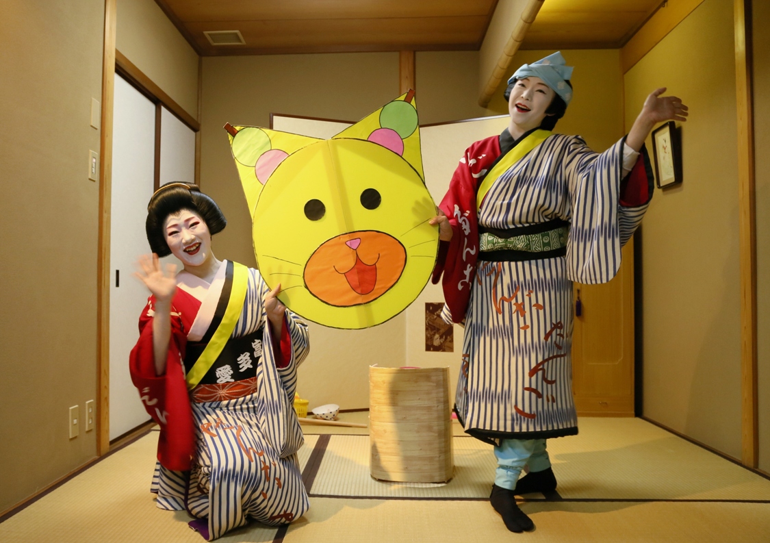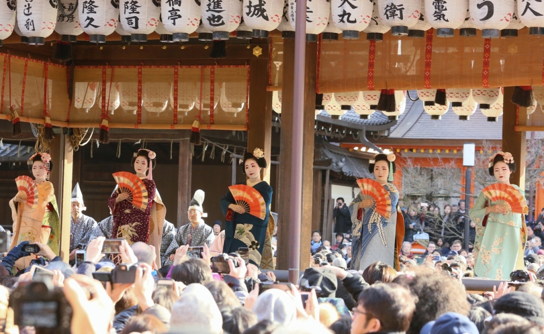At the Gion District in Kyoto, geisha performers and apprentice geisha called maiko behave in an elegant manner and move in a rather languid fashion. In this early February event, however, after a breathtaking transformation in costume, they move from one up-tempo dance to another. It is because of this contrast that the celebration of Setsubun obake is particularly interesting.