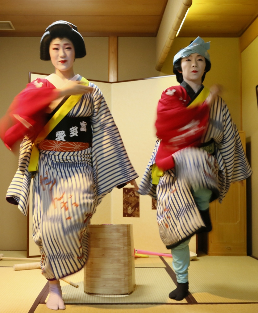 Another source of laughter, especially for people used to high-level kabuki performances, was the unexpected movements that came from the Gion maiko dancing in kabuki costumes.