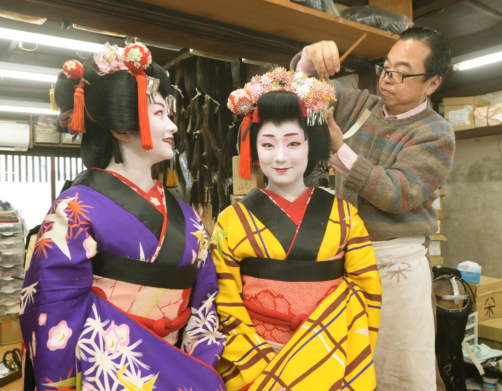 The maiko called Kanohiro also showed off an unusual hair style for the event, incorporating a special type of kimono knot called a fukura suzume, which means a “plump sparrow” in Japanese. The upswept mage part of her hair was raised like the shape of sparrow and decorated with what appeared to be a good fortune charm.