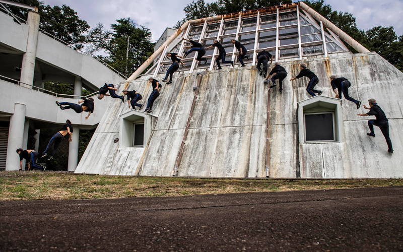 In this image you can see the athlete, Kenichi Sato, perform a massive front flip to ground at the end of the sequence, which would in itself be a cool shot. But I love how you can see his whole line of running up and along the wall to perform the flip in the end.