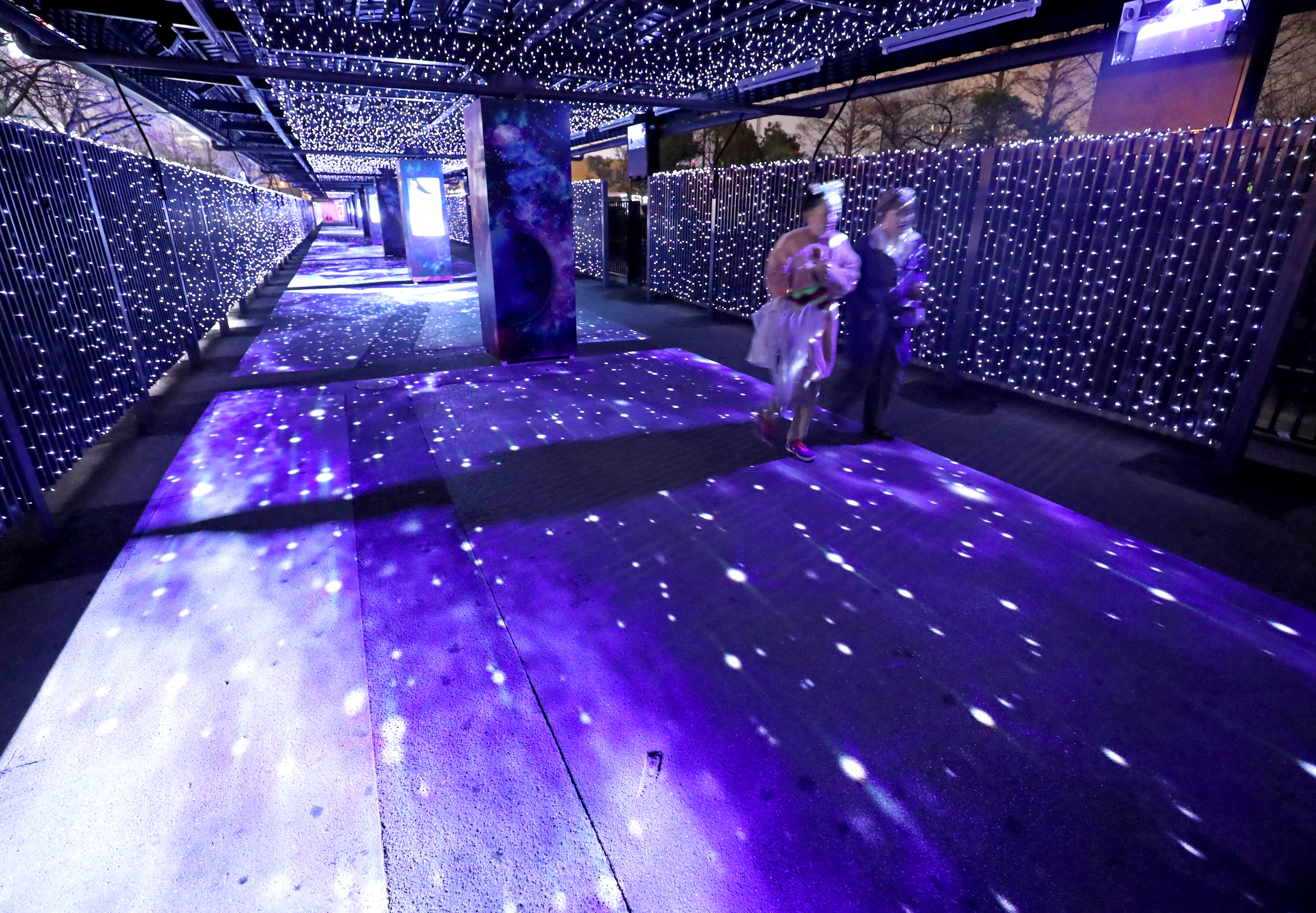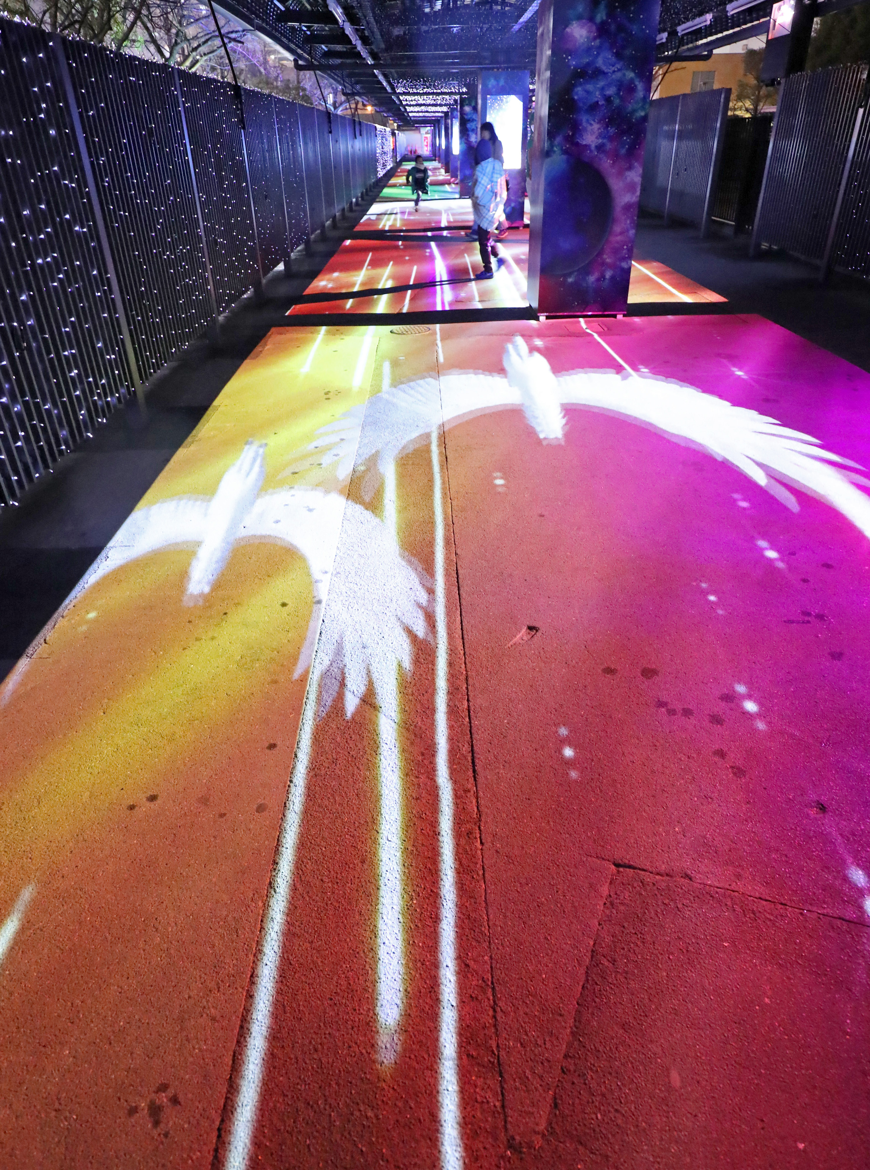 The light installation at Oi Racecourse Tokyo Mega Illumination in Shinagawa, Tokyo, was renewed in January, and it is attracting plenty of attention from Japanese and foreign visitors alike. The new section — appropriately called the Mega Tree Garden — is complemented by 3D project mapping on the surrounding buildings. The images projected show the contrast of nature versus the urban city and represent the change of seasons.