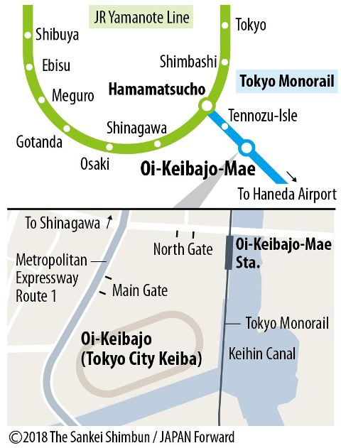 Oi Racecourse is located at the Tokyo Monorail to Haneda Airport. It was a cold, rainy day when this reporter checked out venue, yet it was brimming with tourists travelling from China and the Philippines.