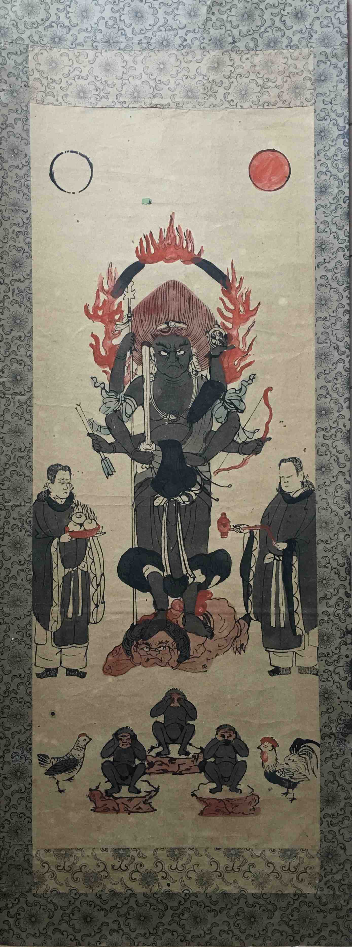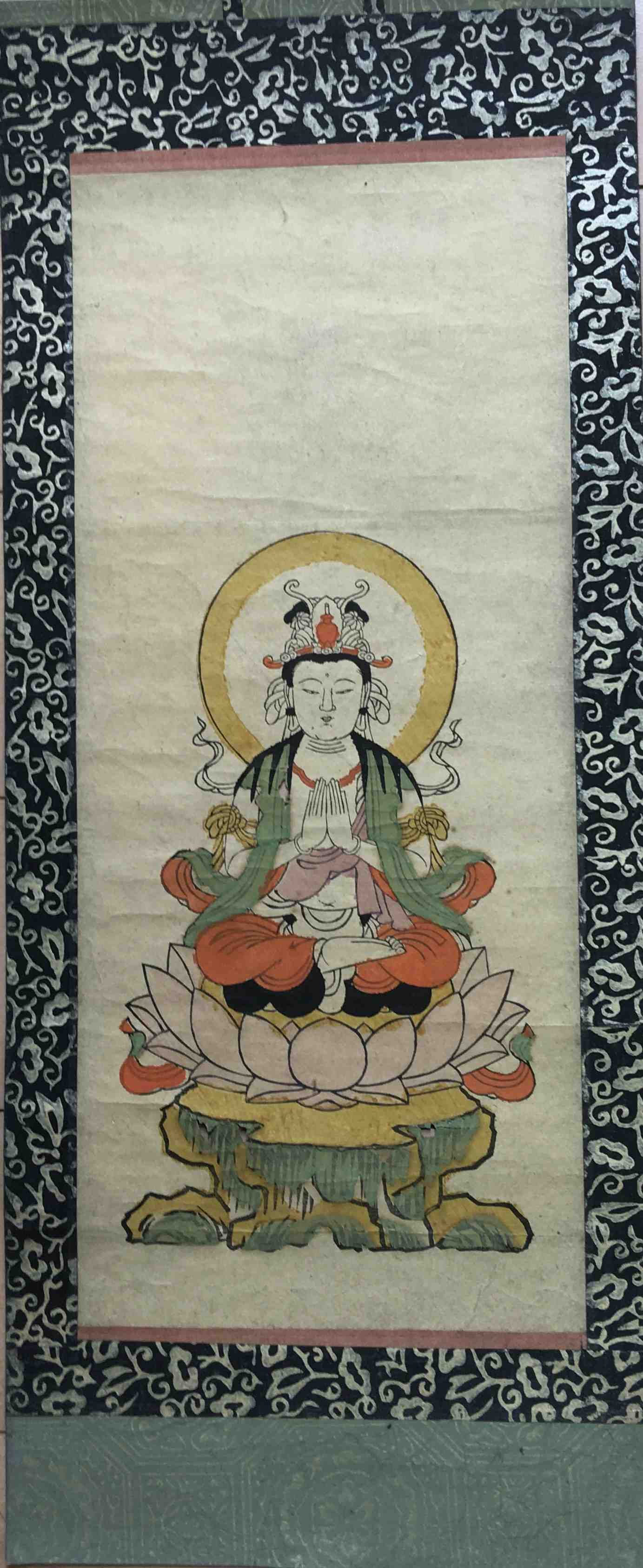 Next, I would like you to take a look at an early kind of religious print called kake-e, which was mounted on a scroll.