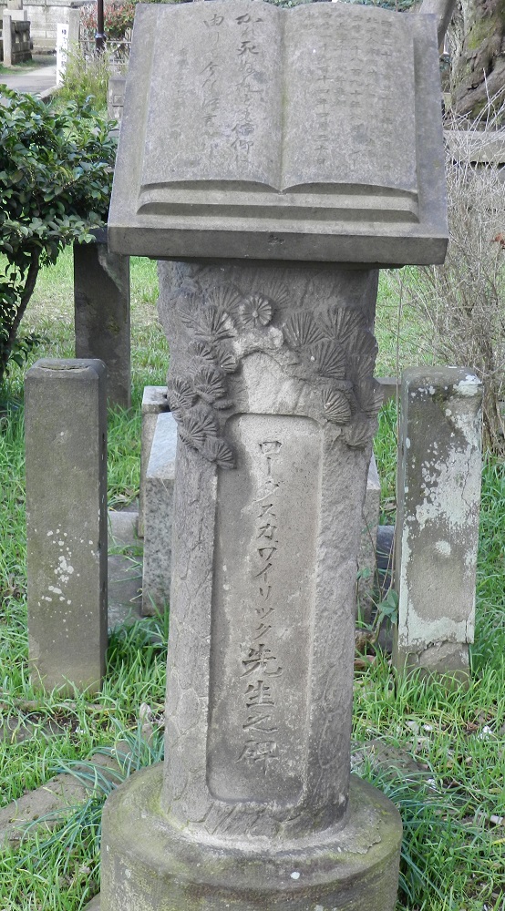 Aside from her grave marker, which is designed as a church lectern with an open Bible on it [PHOTO], her name and the designation “the [Florence] Nightingale of the Orient” appear in many sources dealing with the history of nursing in Japan and in studies of foreign nationals who made a contribution to the modernization of Japan during the Meiji era.