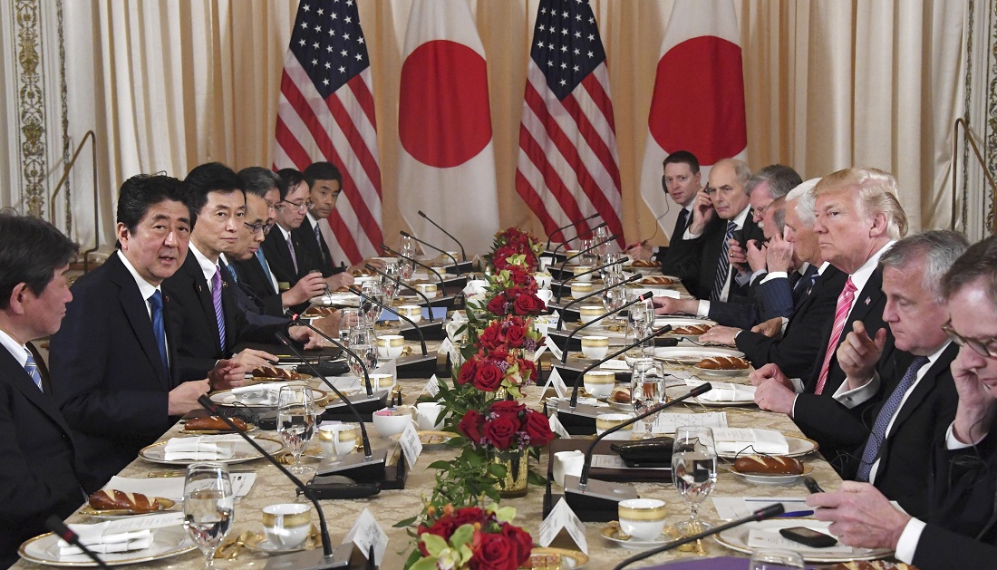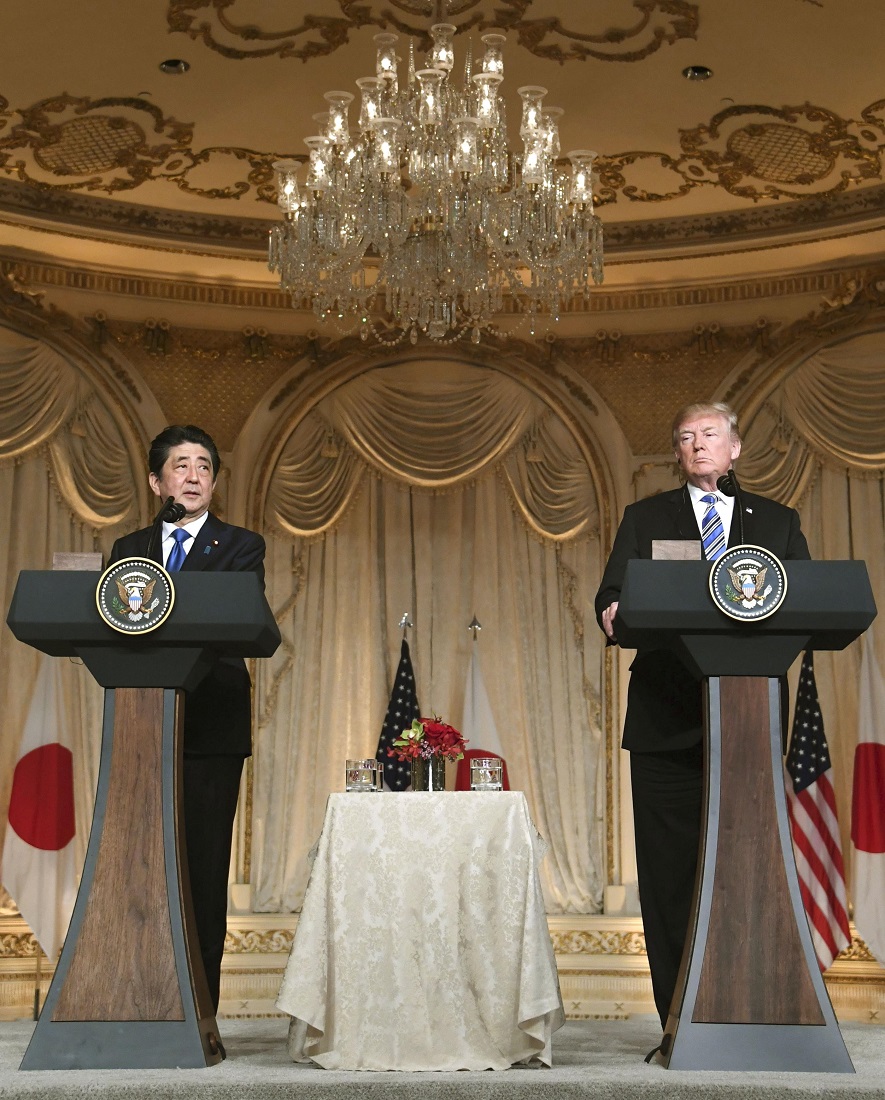 It was the first in their series of meetings during Abe's current visit to Mar-a-Lago in Florida.