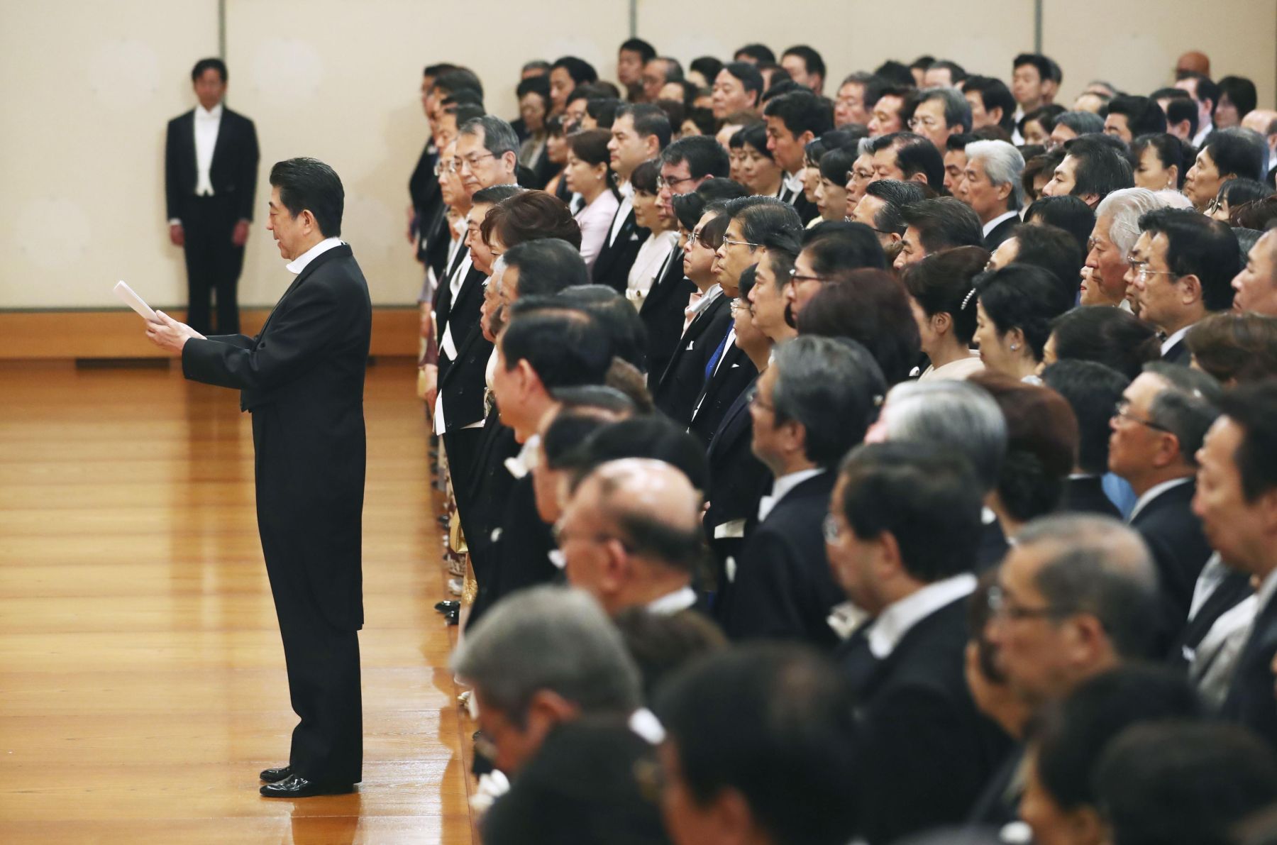 The two ceremonies held earlier in the morning at the Imperial Palace were the first to mark the accession of Naruhito to the Chrysanthemum Throne. Prime Minister Abe and his Cabinet were in attendance at both.