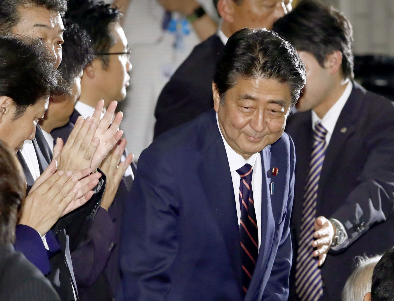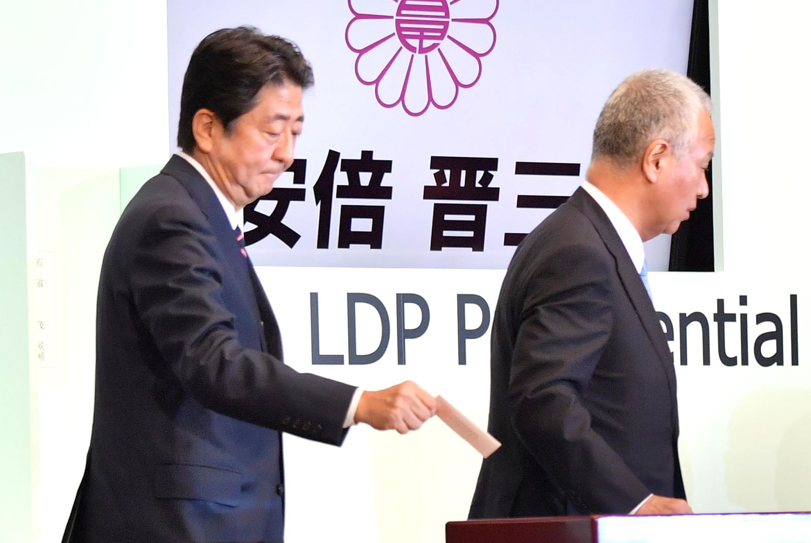 Garnering overwhelming support from LDP members, he defeated his lone opponent Shigeru Ishiba, a former party secretary-general.