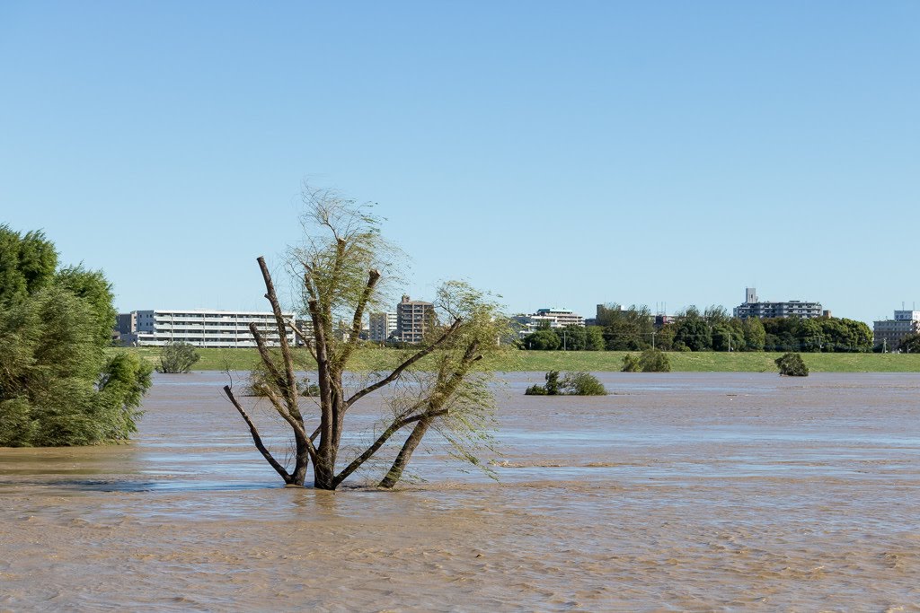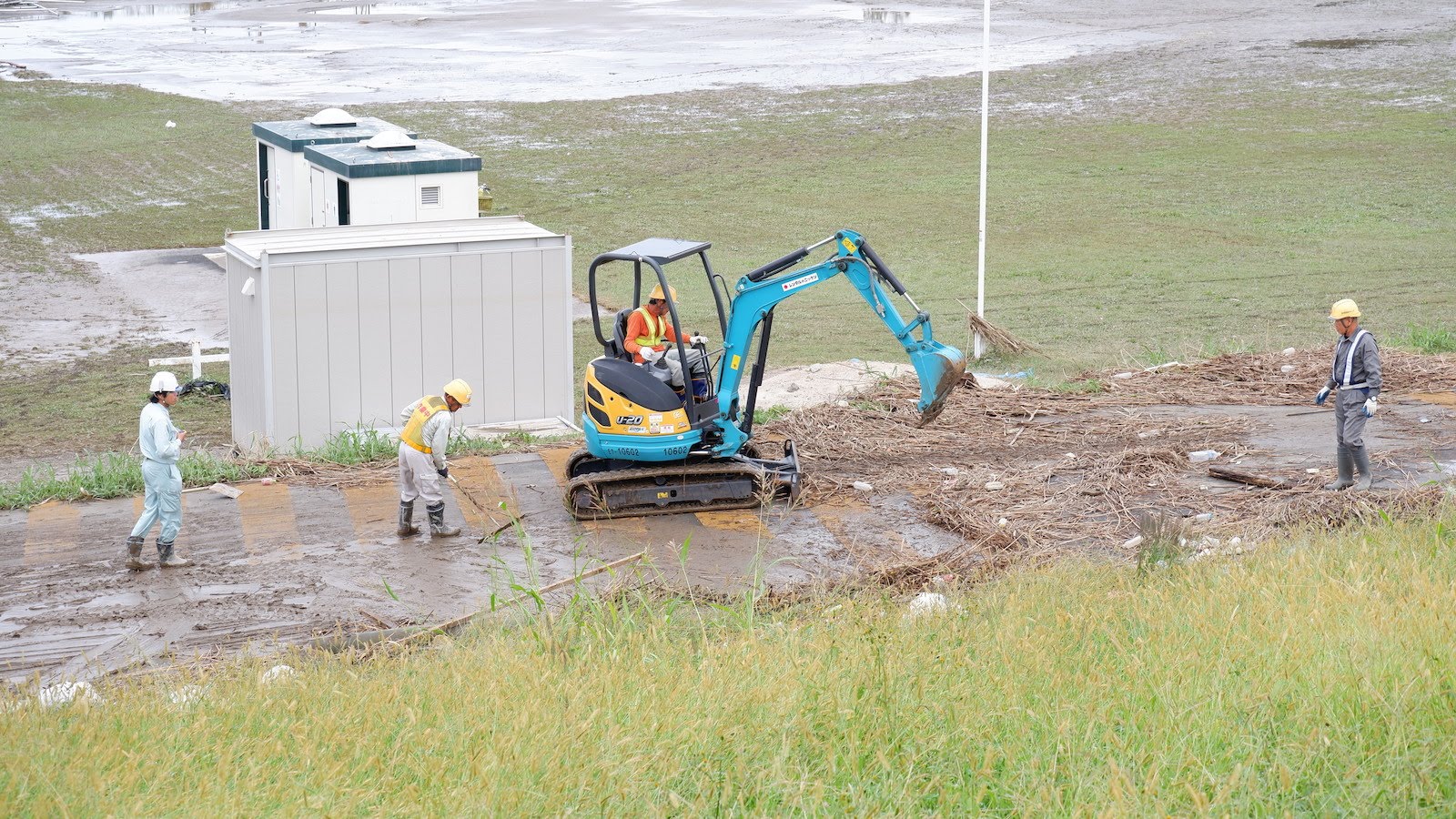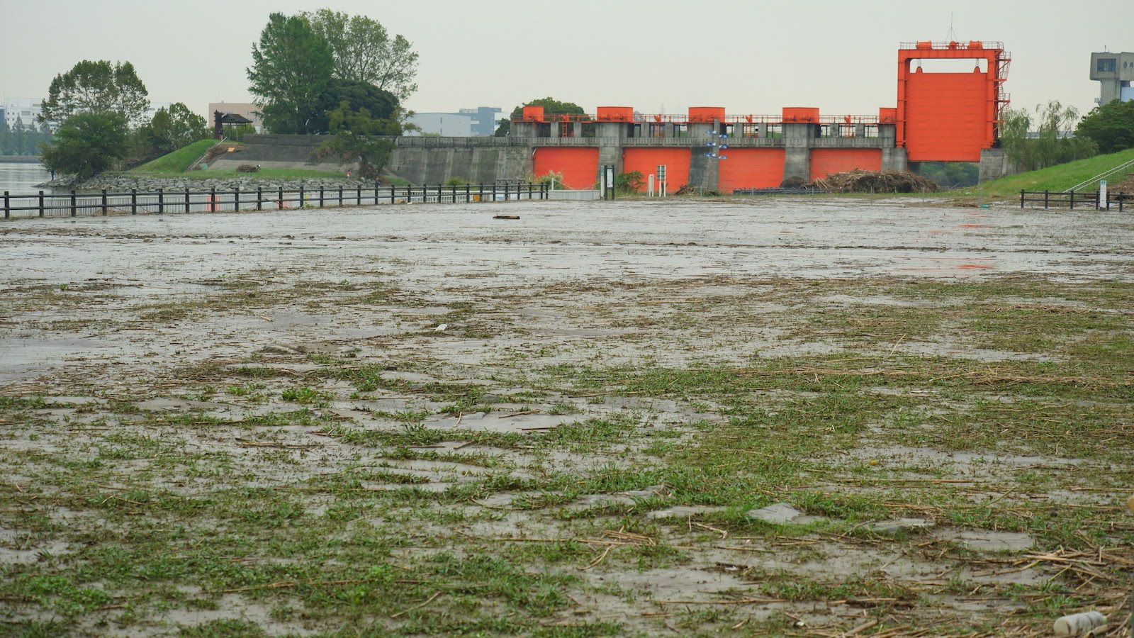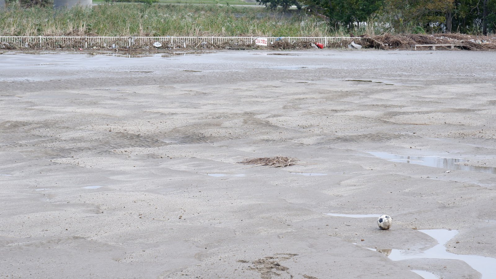 The “duck pond” in Photo 4 is actually a completely submerged municipal golf course. There are a number of public and private courses on the overflow areas within the Arakawa banks. The municipal golf course shown in the photographs is now visible, but far from usable.