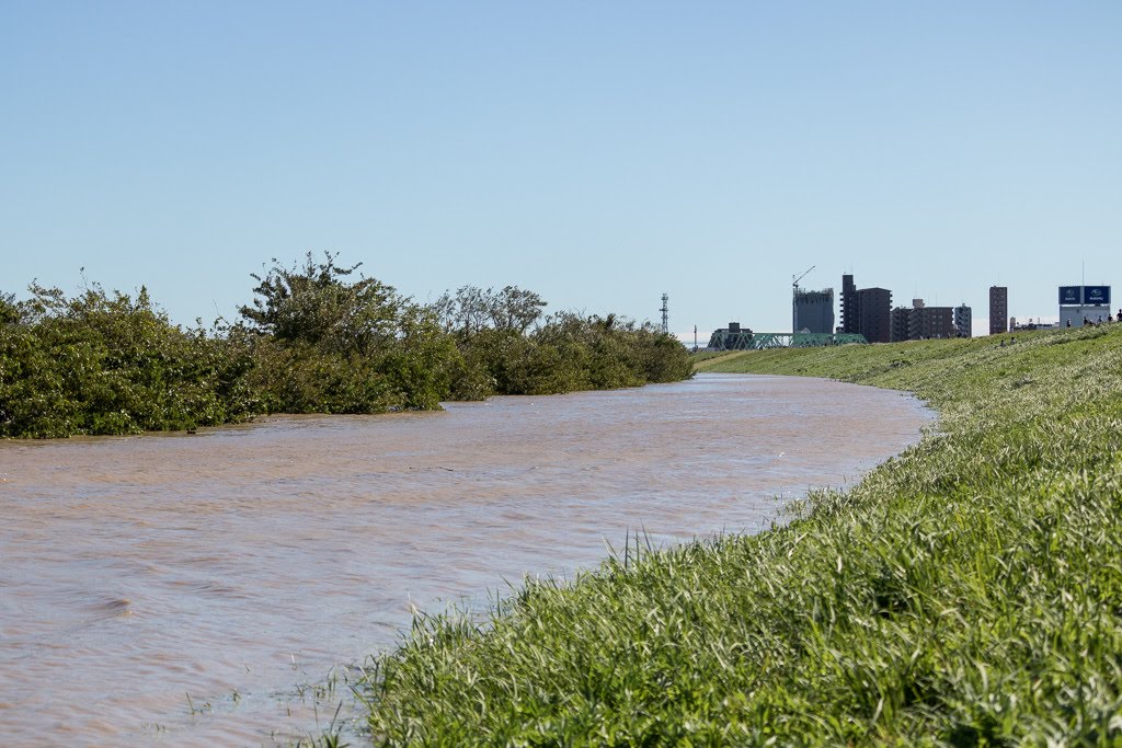 Upstream from Tokyo, at its widest point, the bank-to-bank distance is nearly three kilometers, although the river itself is normally only a few hundred meters wide. The extra width is to accommodate storm flow — it is expected to flood, although not every year.