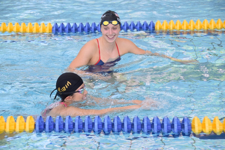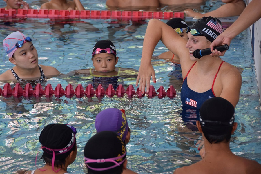 Aiming to boost the Tokyo 2020 Olympic and Paralympic Games, Katie Ledecky held a special swimming class for elementary, junior high, and high schools students in the Setagaya district of Tokyo on Tuesday, August 14.