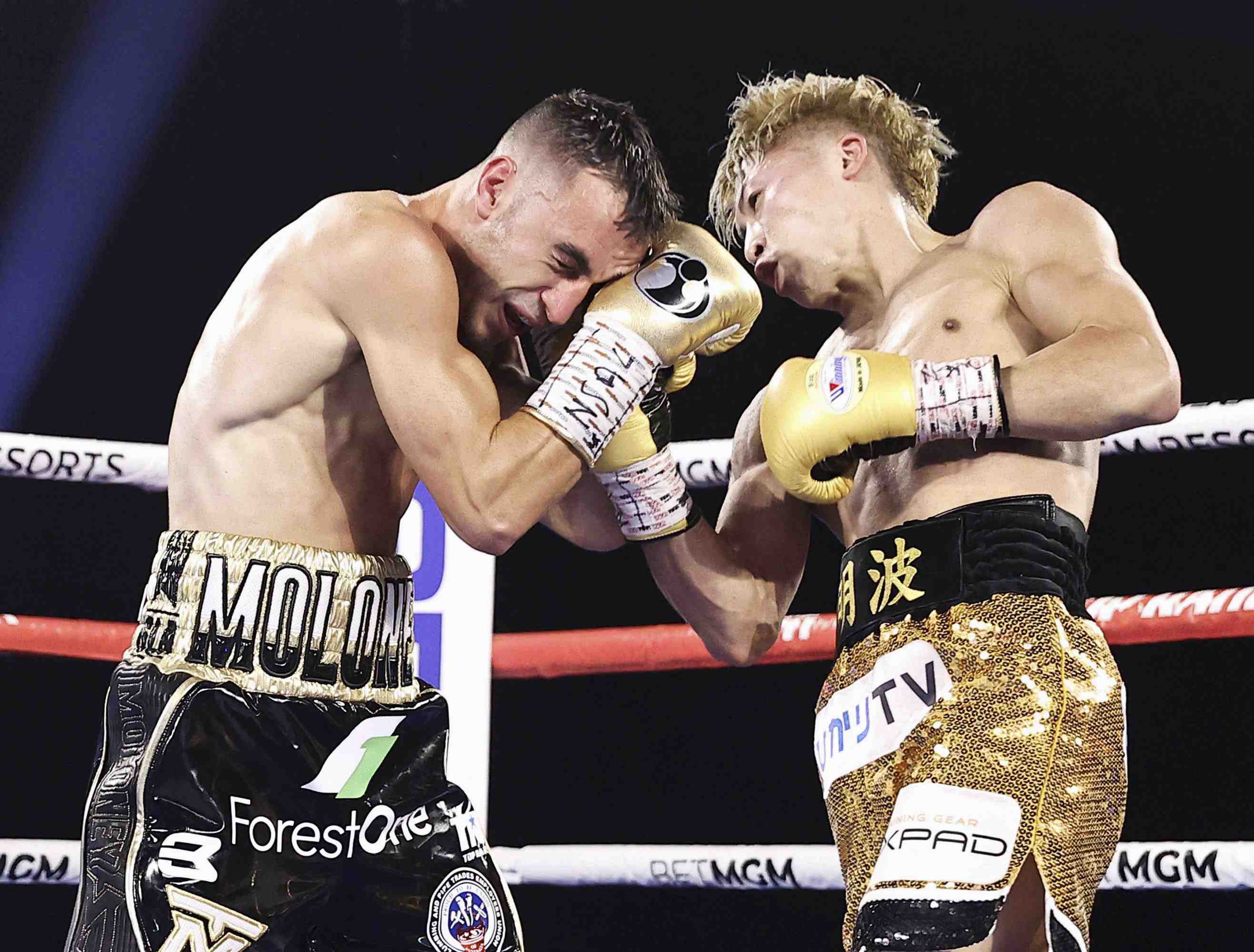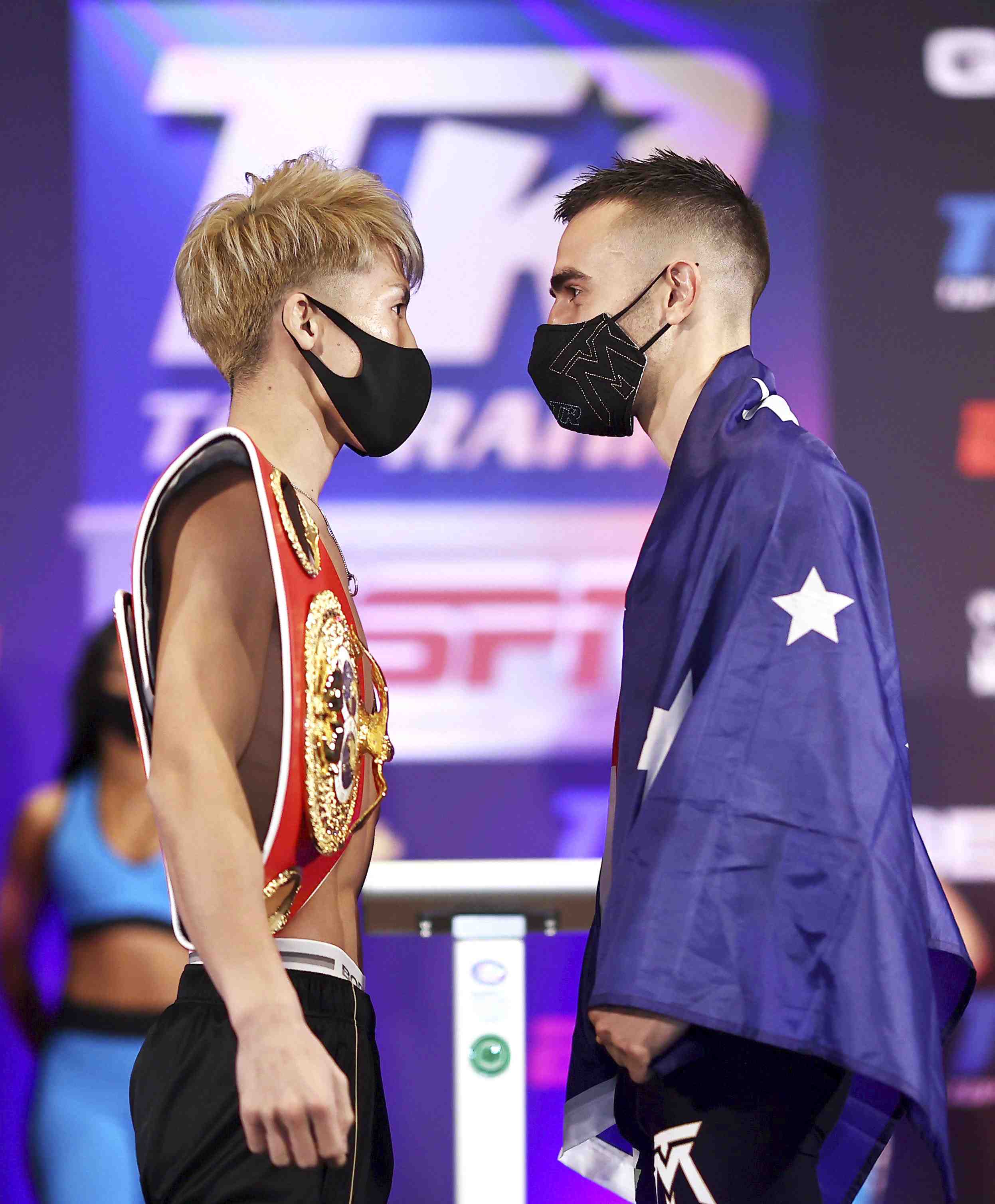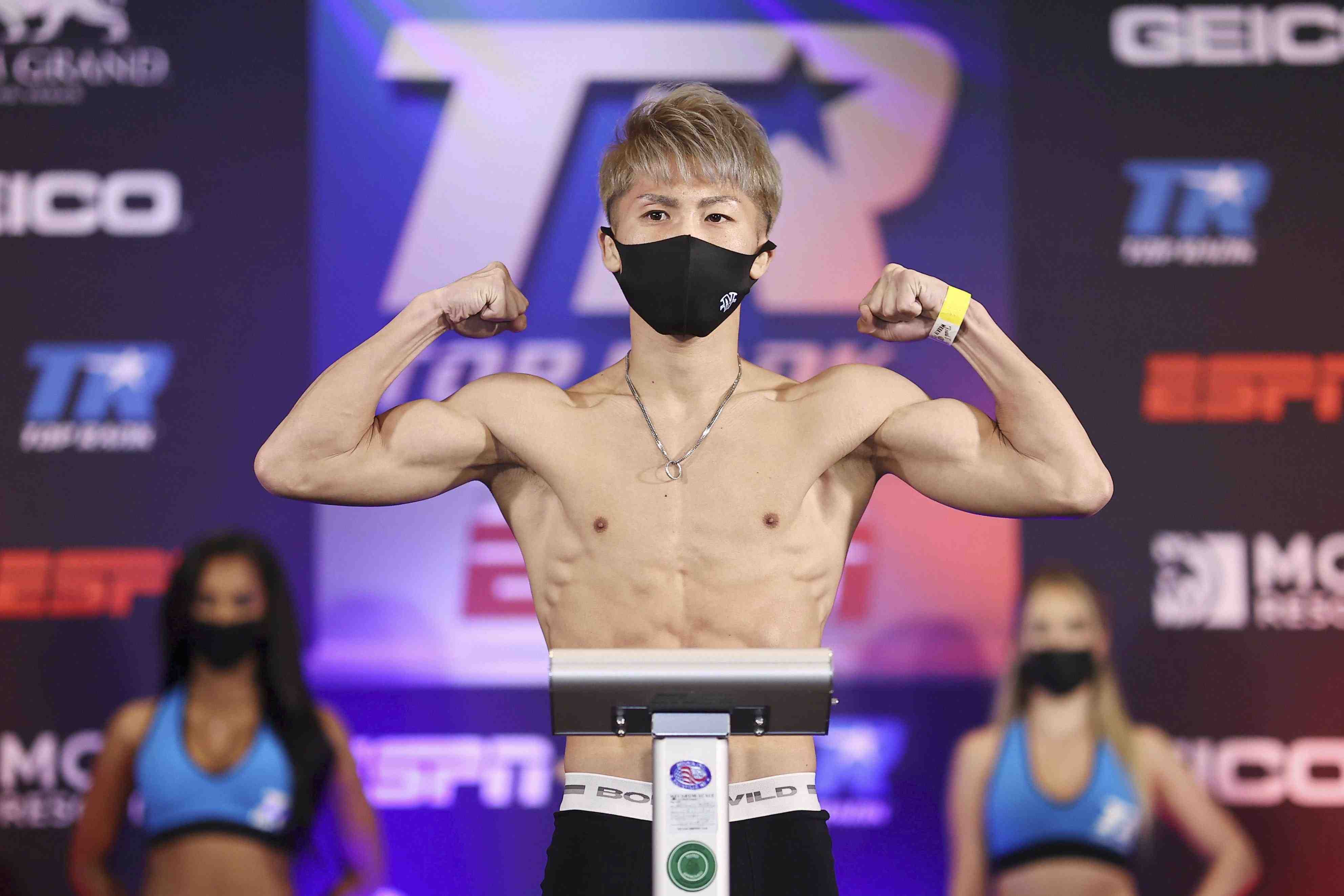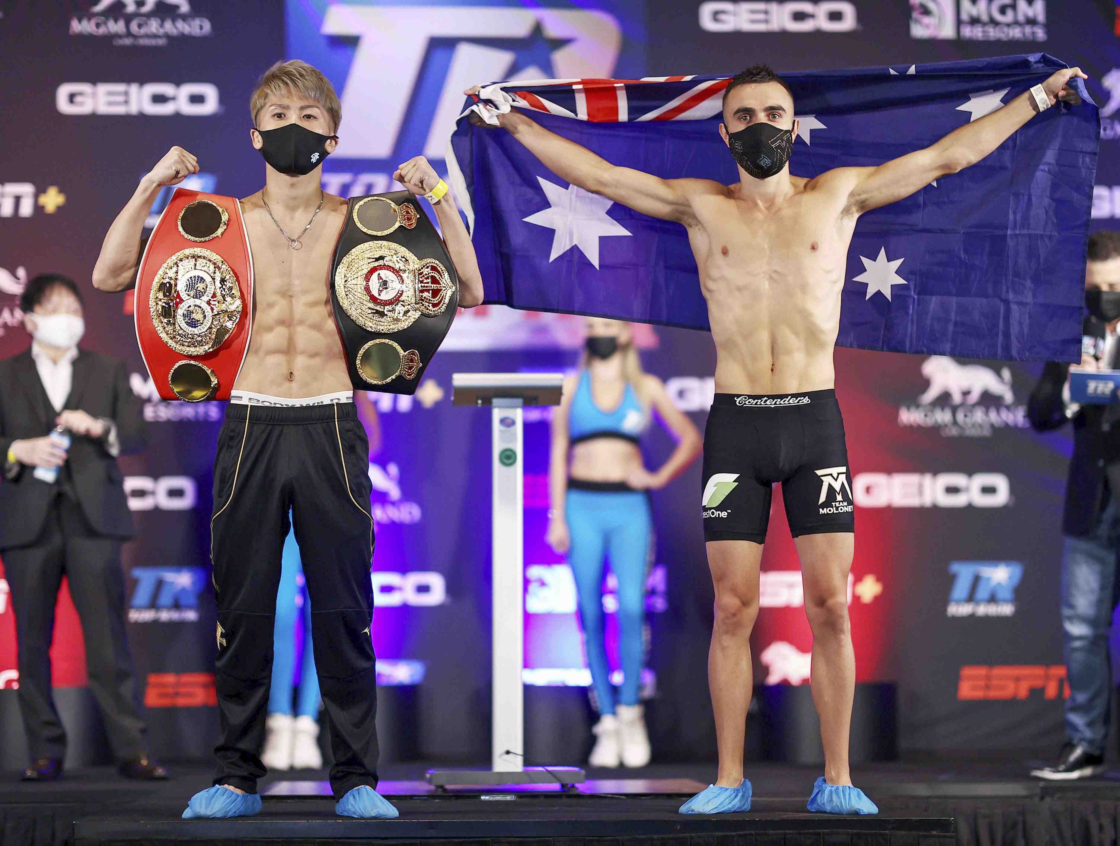 Like other marquee sporting events of late in the United States, the Inoue-Moloney showdown, and the rest of the night's boxing card, was held inside a bubble in Las Vegas, without spectators due to the COVID-19 pandemic. What's more, in the pre-fight weigh-in, both fighters wore face masks.