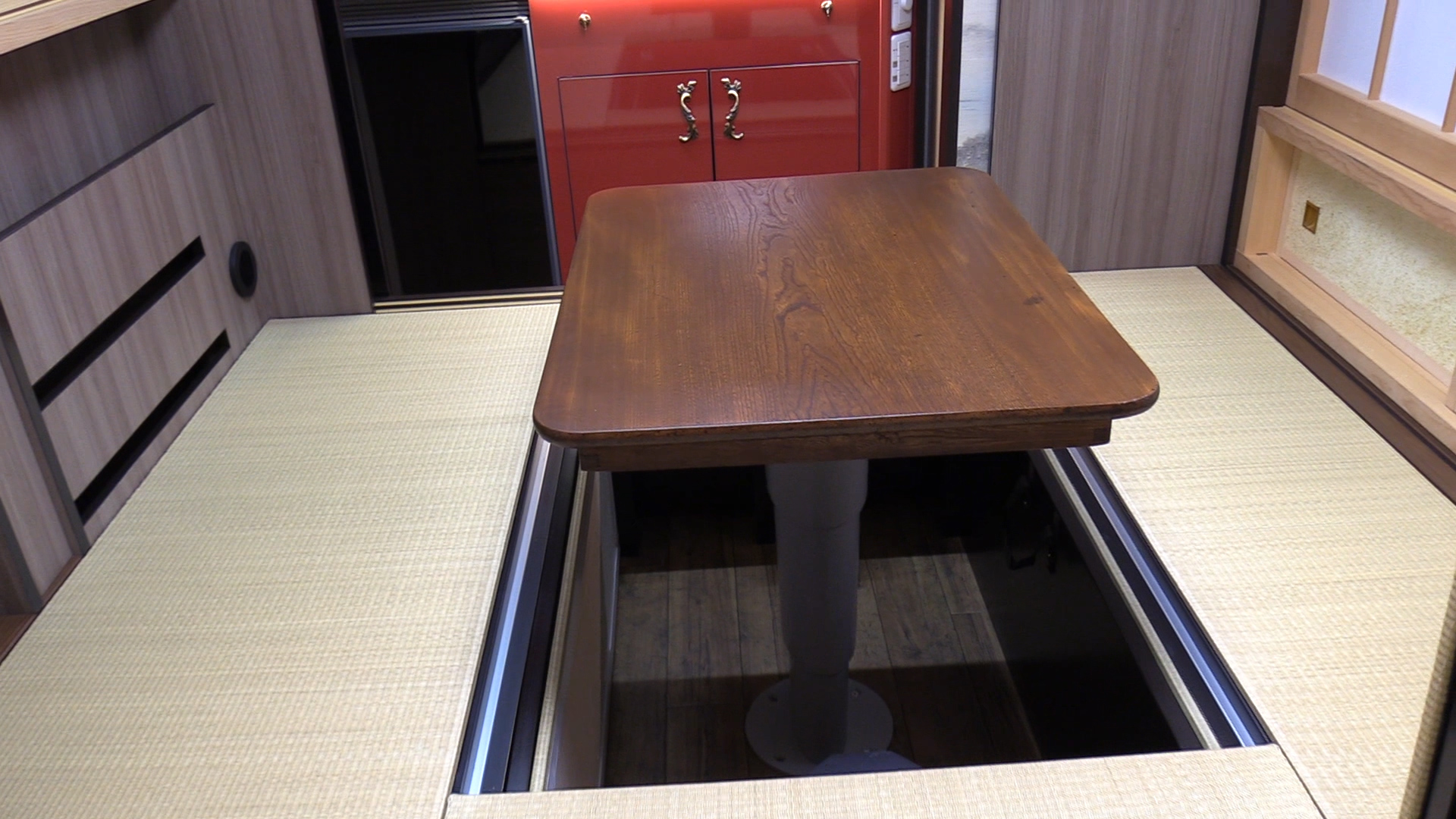 For those who are not willing to give up the comfort of the much-loved straw mats and paper sliding doors, there is a camper for you too. It is easy to forget that you are inside a vehicle once you shut the door to find yourself in this camper, which is based on a traditional Japanese style home, with a horigotatsu (the customary table inside the tatami) thrown in.