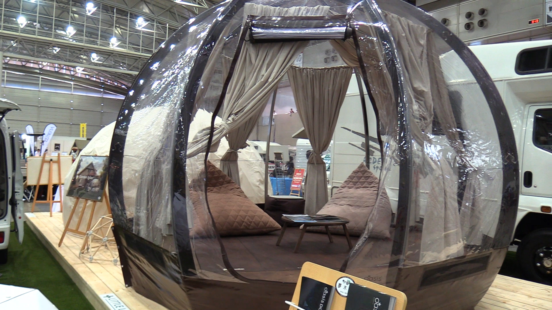 This camper exhibition also has found ways to address Japan’s natural disasters. In 2018 alone, Japan experienced a heat wave, typhoons, flooding, and several earthquakes, including the one in Hokkaido earlier in September. To meet this concern, there is a display of shelter cars. The interior looks much like an airplane. It is designed to float on water and provide shelter in the most extreme situations.