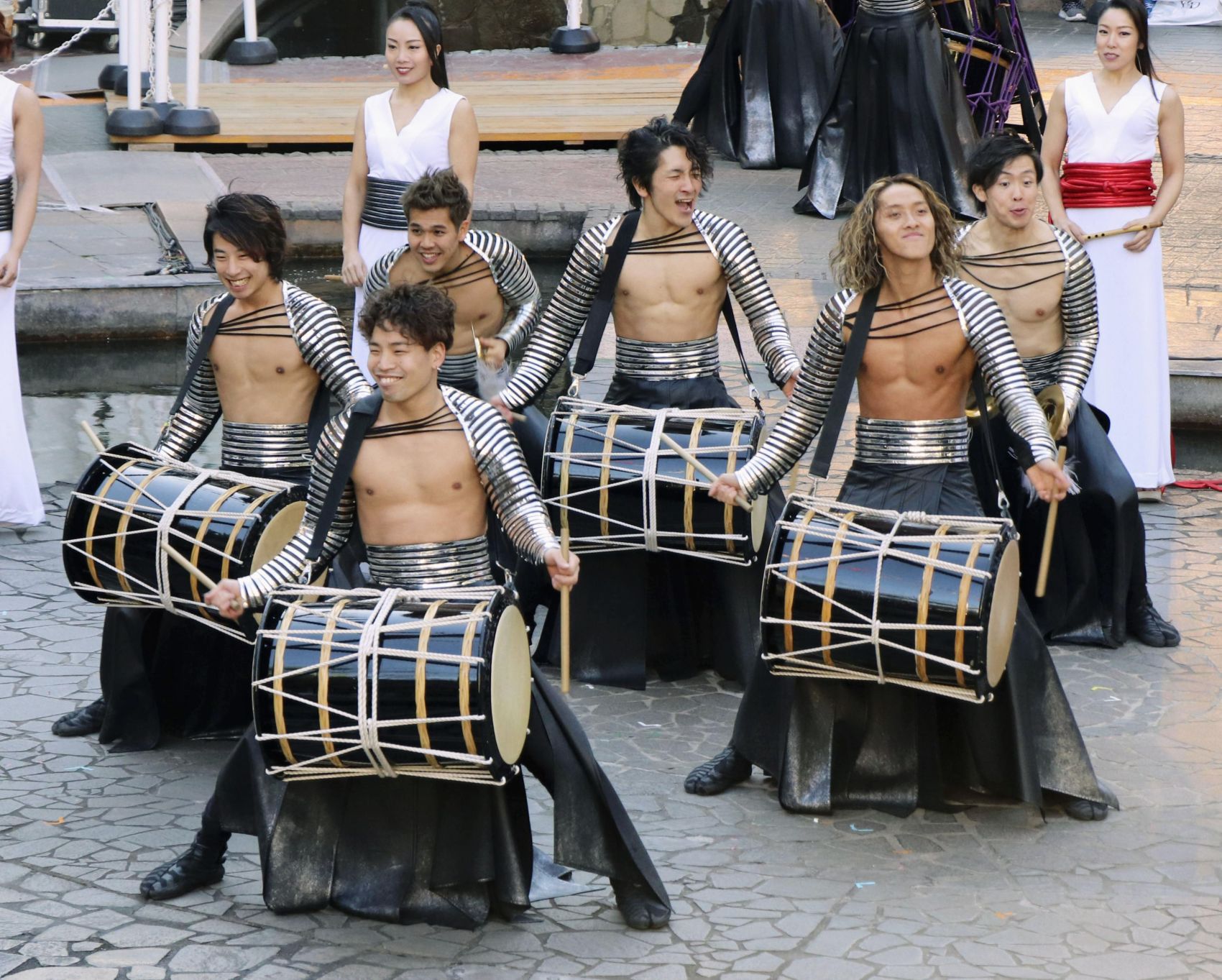 We wanted to do something that would appeal to young people. I thought about what would be good, and what immediately came to mind was Cirque du Soleil, a Canadian performance group. Their acrobatic show, Mystère, was performed in Las Vegas, the birthplace of show business. There were taiko drums playing for the opening, and although they weren’t played very well, they looked good and the audience loved it. For some reason, it left a strong impression on me. I realized there was no need to get hung up on traditional costumes like Happi and Hachimaki.