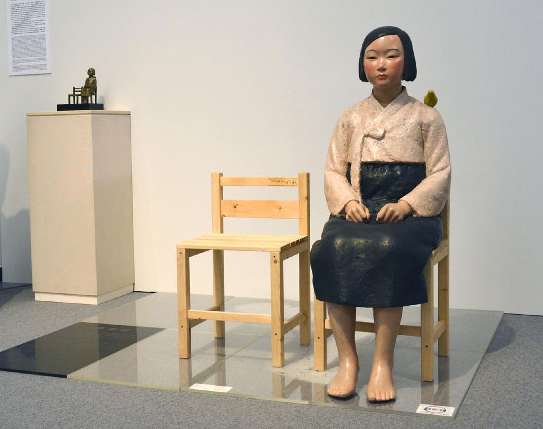Also on display was a statue of a young girl representing “comfort women.” The English explanation referred to the work as “sexual slavery.” The description is a gross distortion of history.