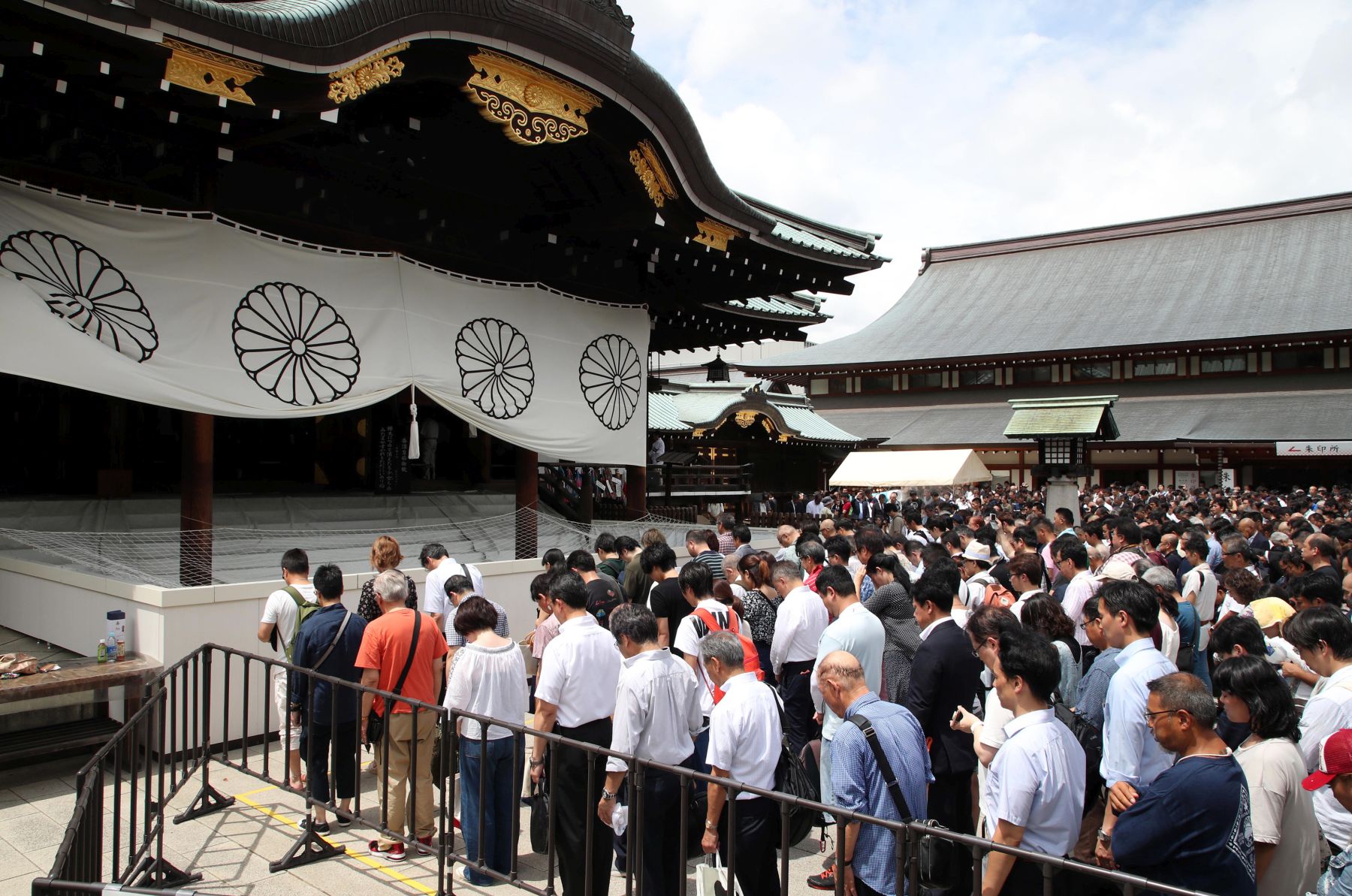 From early in the morning of the same day, many people paid their respects at the Yasukuni Shrine in the Kudanshita district, just across the road from the Nippon Budokan. The shrine, now in the 150th year since its founding, enshrines the souls of 2.46 million people who sacrificed their lives for the country since the last days of the Tokugawa shogunate. Of those, a little more than 2.13 million died in World War II.
