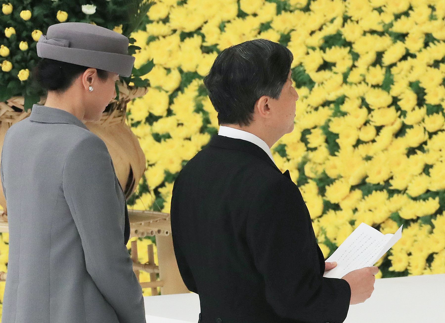 His Majesty, upon speaking at the event, said, “Together with all of our countrymen, I now pay my heartfelt tribute to all those who lost their lives in the war, on the battlefields or elsewhere, and pray for world peace and for the continuing progress of our country.”