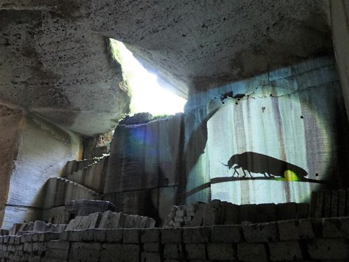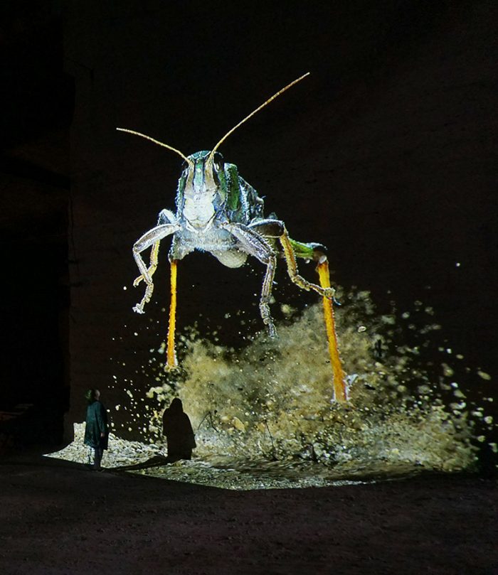 Completely for free until November 8, visitors can enter this magical underground world where the light is dim and the temperature drops precipitously from the world above, and enjoy the sometimes cute and other times eerie images of insects projected on the walls.