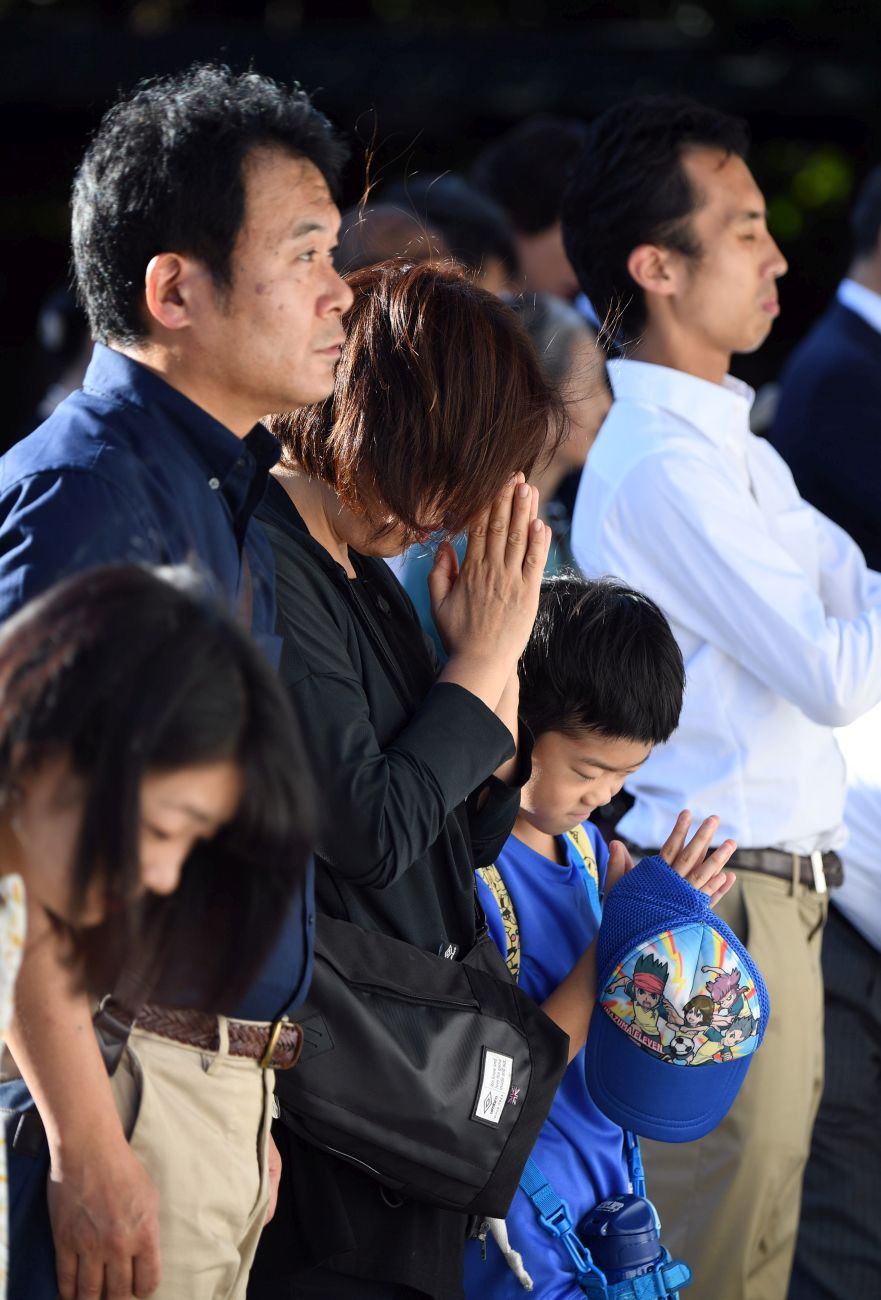 Prime Minister Shinzo Abe also addressed the service, declaring: “Never again will we repeat the devastation of war. Humbly facing history, we will firmly keep this pledge, whatever course the world may take.”