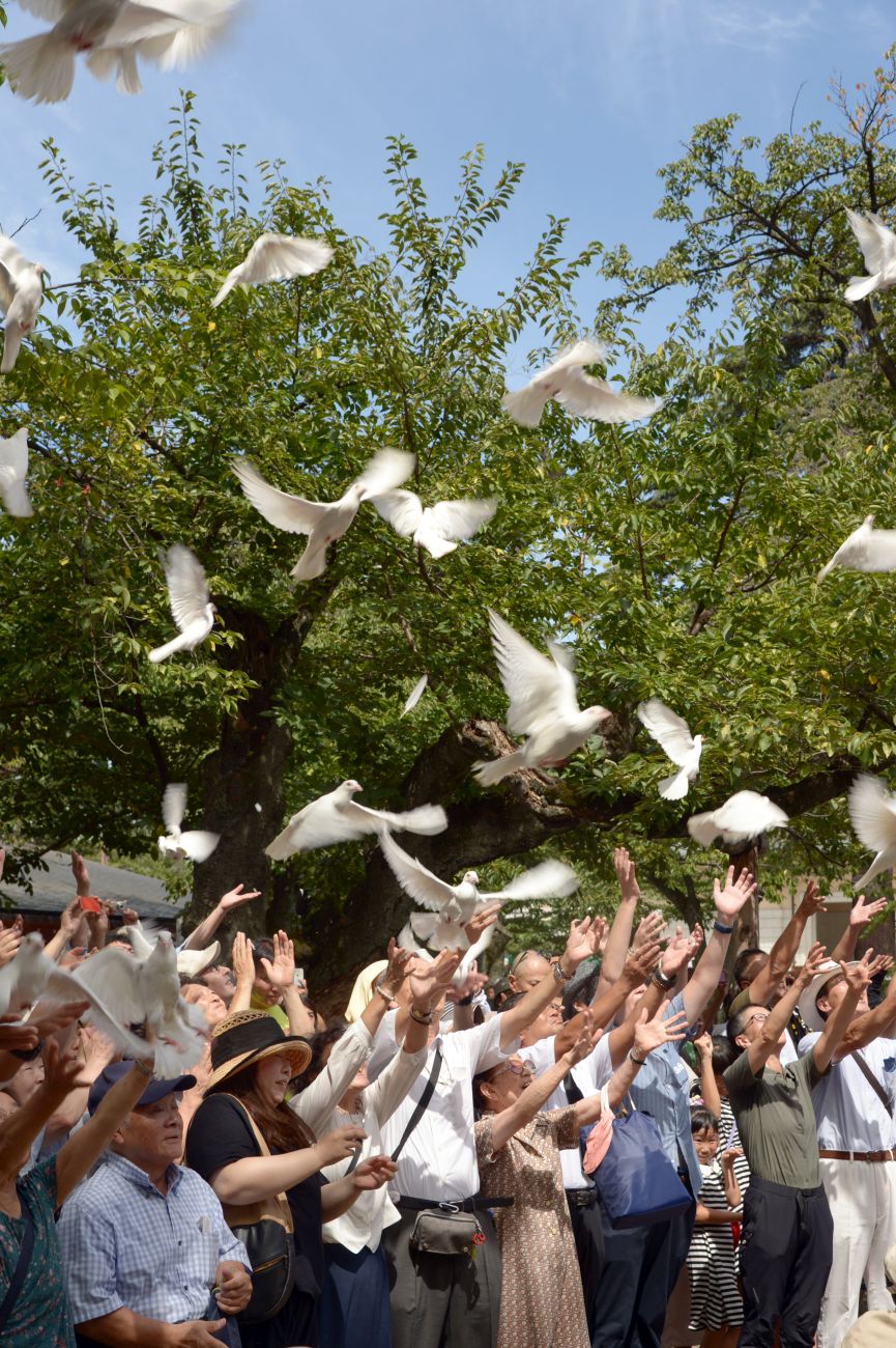Some 6,000 people participated in this year’s commemorative event, including Prime Minister Abe and relatives of the war dead from across the country. They all paid tribute to the those whose lives were sacrificed in the war — 2.3 million soldiers and civilian war workers and 800,000 ordinary people — and renewed their vow for peace.