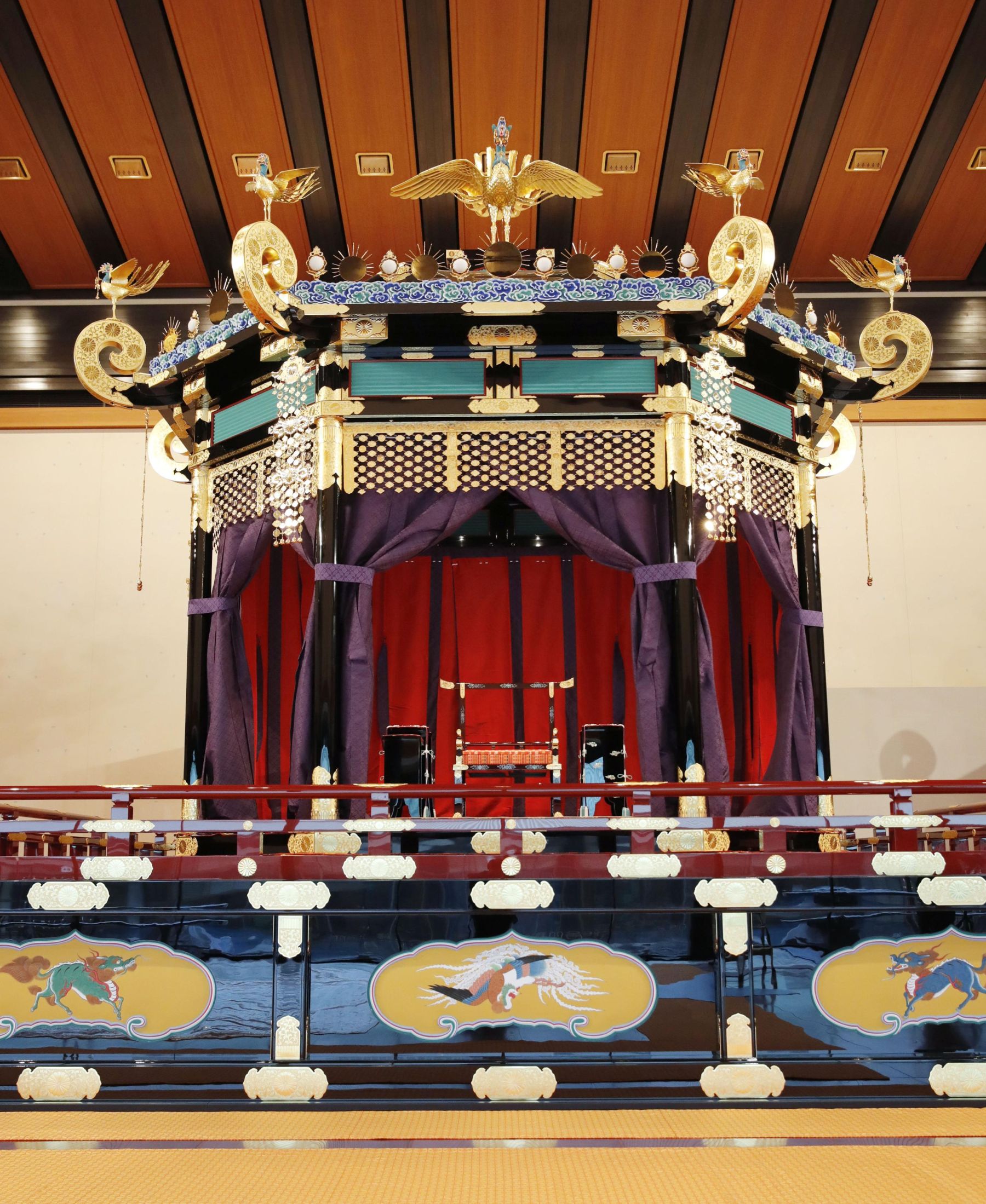 After the last enthronement ceremony in November 1990, both the Takamikura and Michoudai were disassembled and stored in the Imperial Palace in Kyoto, where they were kept until 2018. Due to some damage to the lacquer, the best craftsmen from all over the country were enlisted to reassemble and bring back their mirror-like shine and quality.