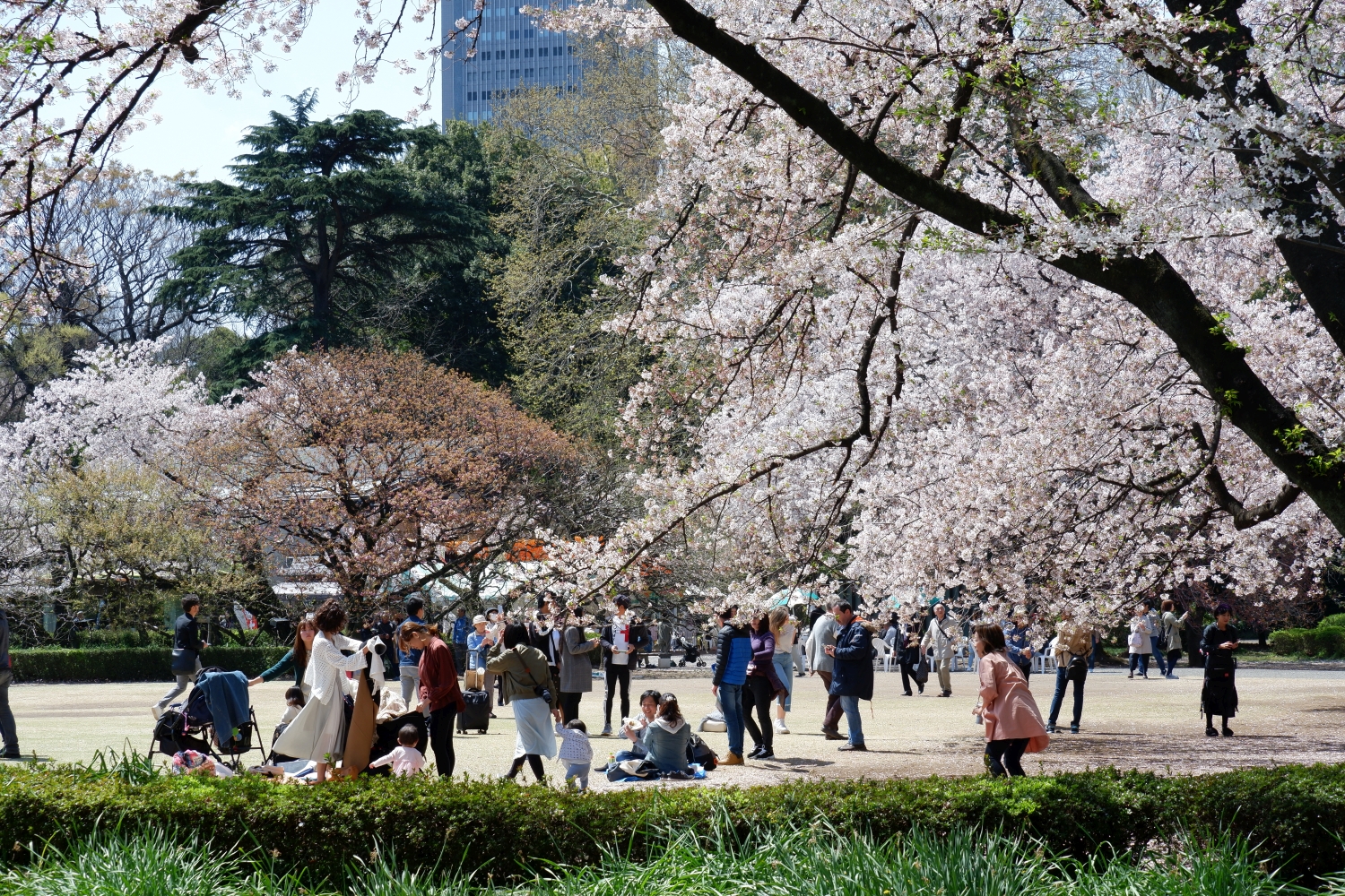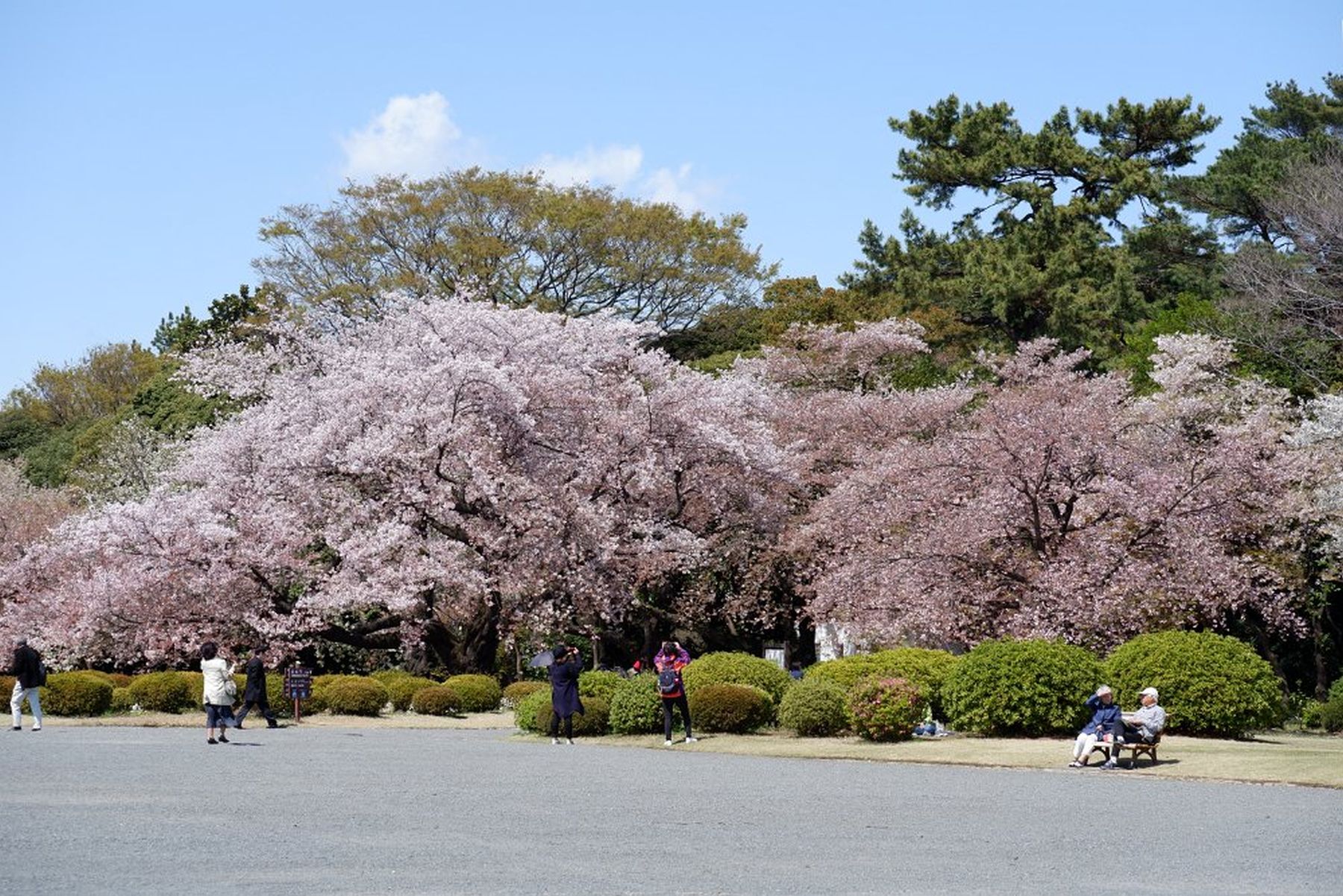 The relatively late blooming of the cherry trees in Shinjuku Gyoen explains the scheduling of the annual Cherry Blossom Viewing Party sponsored by the Prime Minister, scheduled for April 13 this year. With dry and balmy weather predicted, those invited should be able to enjoy the full splendor of this park.
