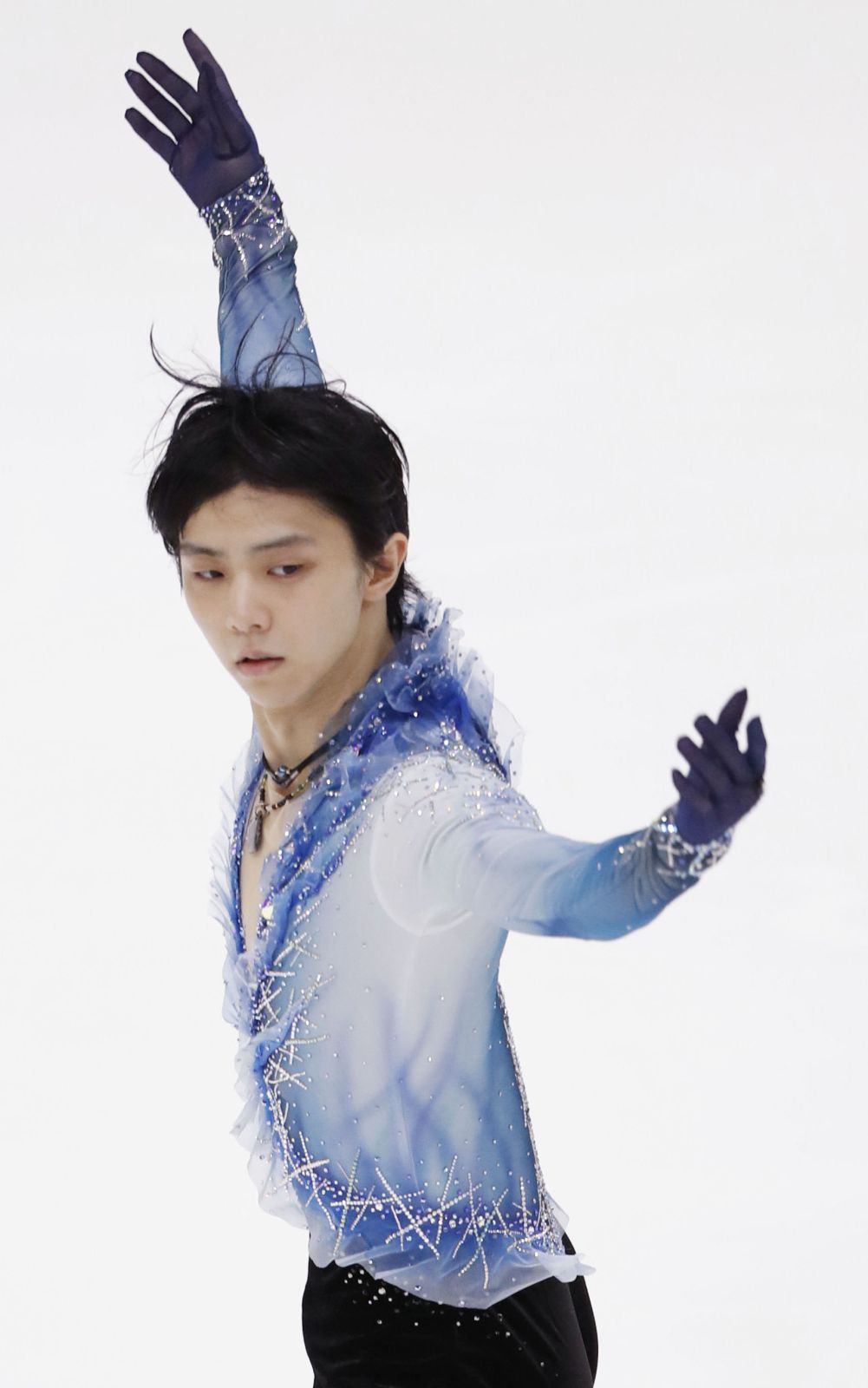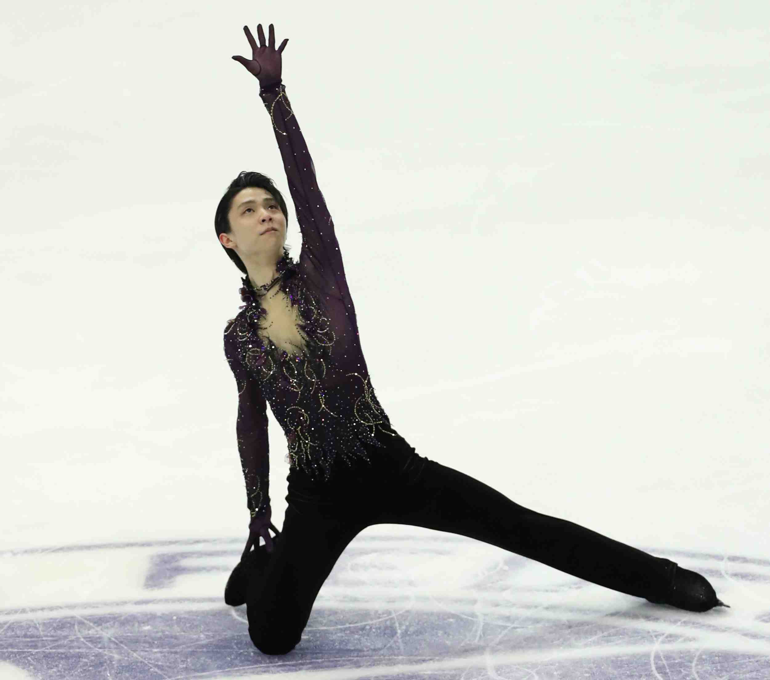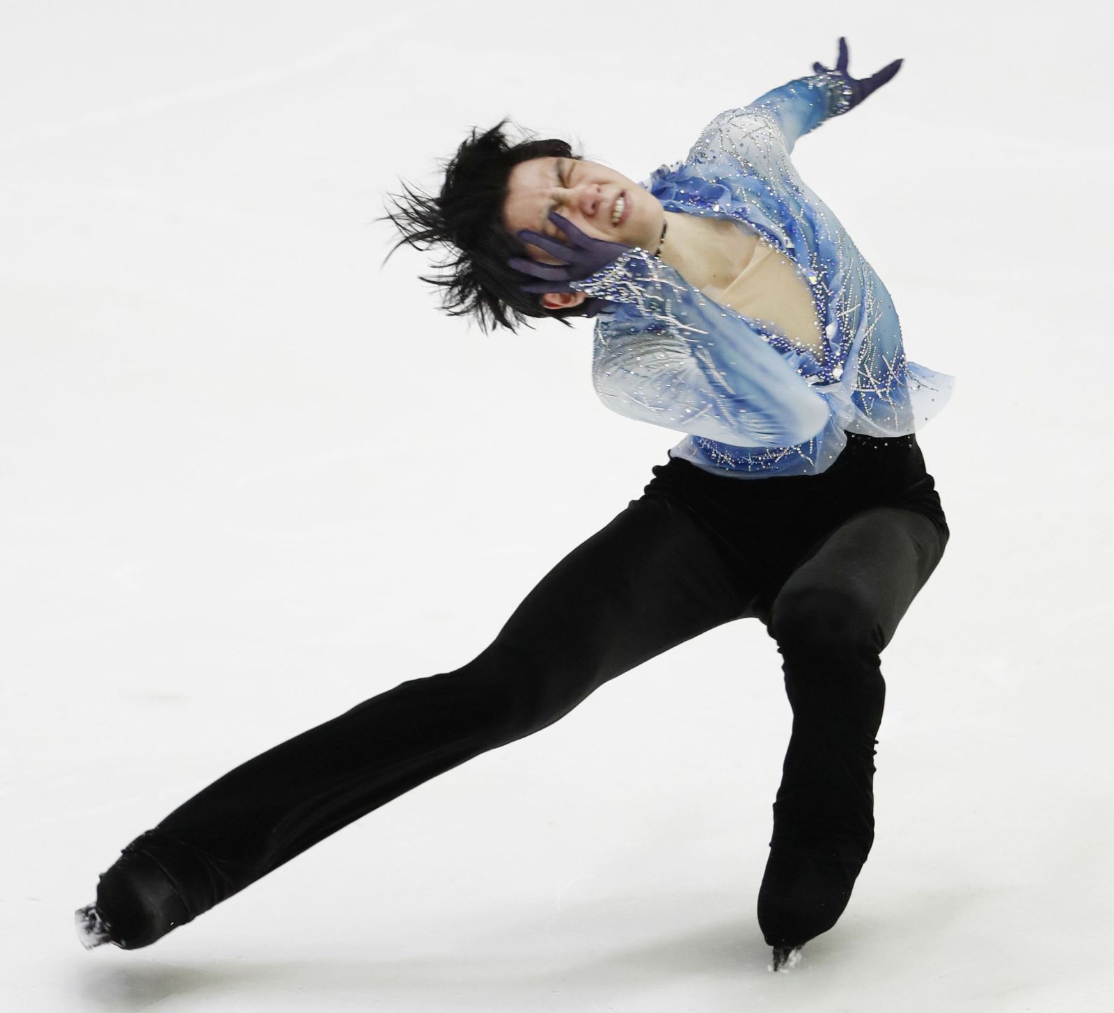 Yuzuru Hanyu of Japan performs his routine during the men's free skating of the figure skating ISU Helsinki Grand Prix event in Helsinki, Finland, Sunday, Nov. 4, 2018. (Martti Kainulainen/Lehtikuva via AP)