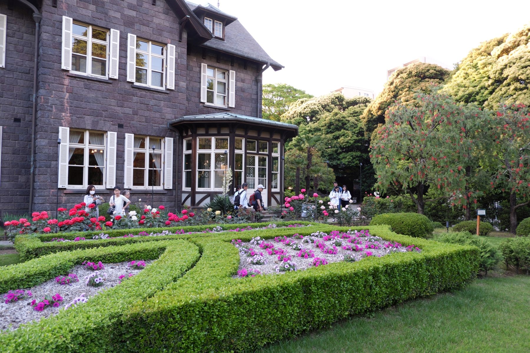 The mansion and its distinctive European garden were designed by the English architect Josiah Condor (1852-1920), famous for a number of other European-style buildings in Tokyo. Others that remain include the Nicolai Cathedral in Ochanomizu and two buildings within the Iwasaki Gardens.