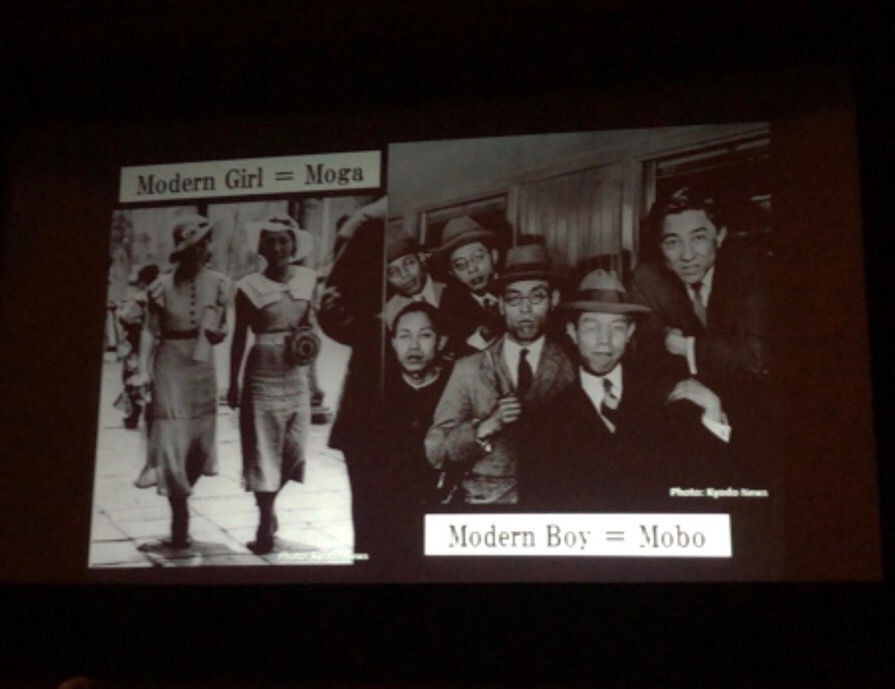 This is followed by a black and white romance film, also set in Ginza. Then, suddenly, everything goes dark. It seems that the projector has broken down. When the lights come back on, a man and a woman dressed in their dated costumes jump out of the screen.