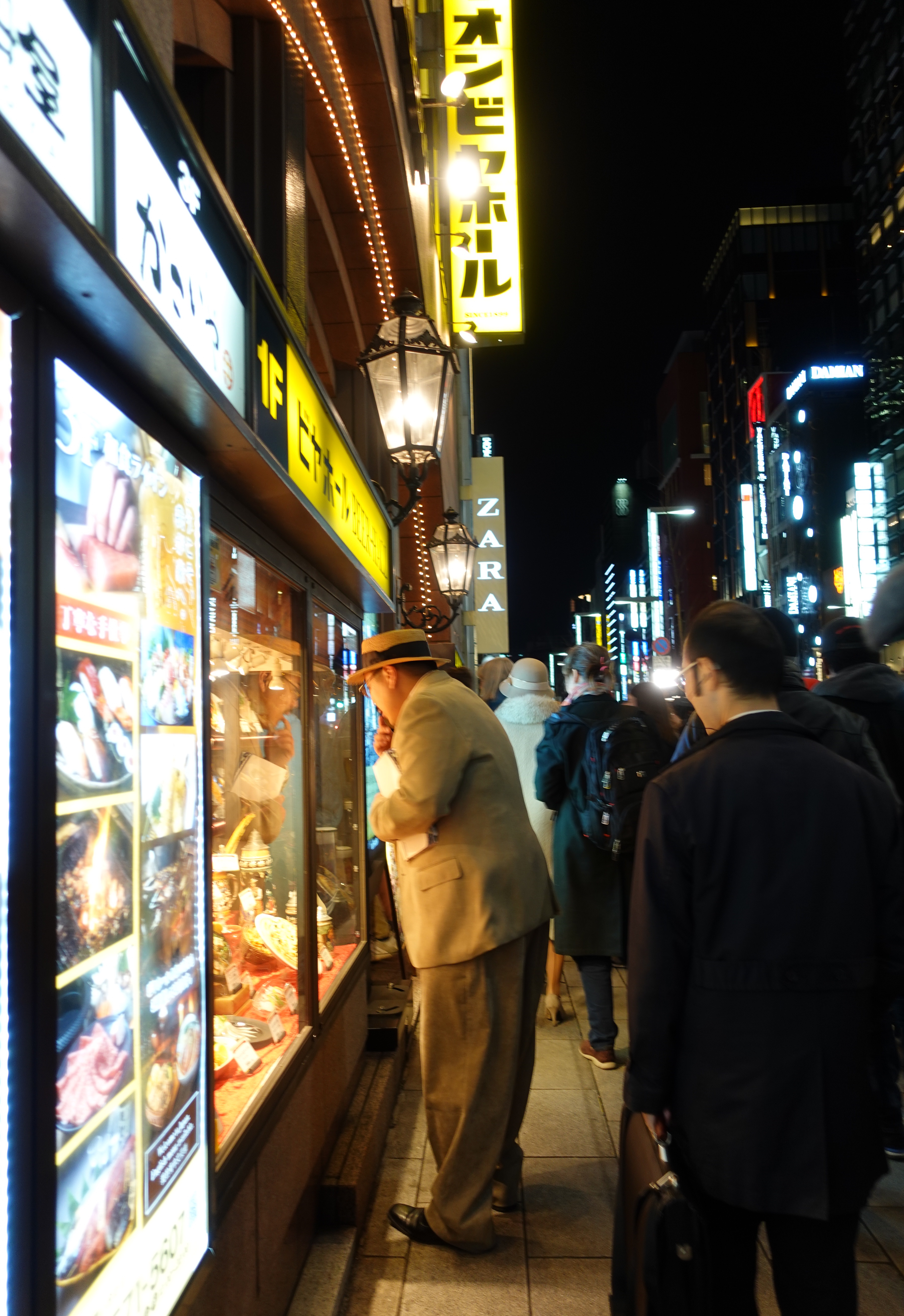 The tour is designed so that the participants can experience Ginza's rich offerings, including its history. The two actors playing the characters who traveled forwards in time from the 1930s do comical skits, pointing out how Ginza has transformed. Not only do the participating visitors receive an audio guide, but the man, the woman, and the tour guide all speak in English.
