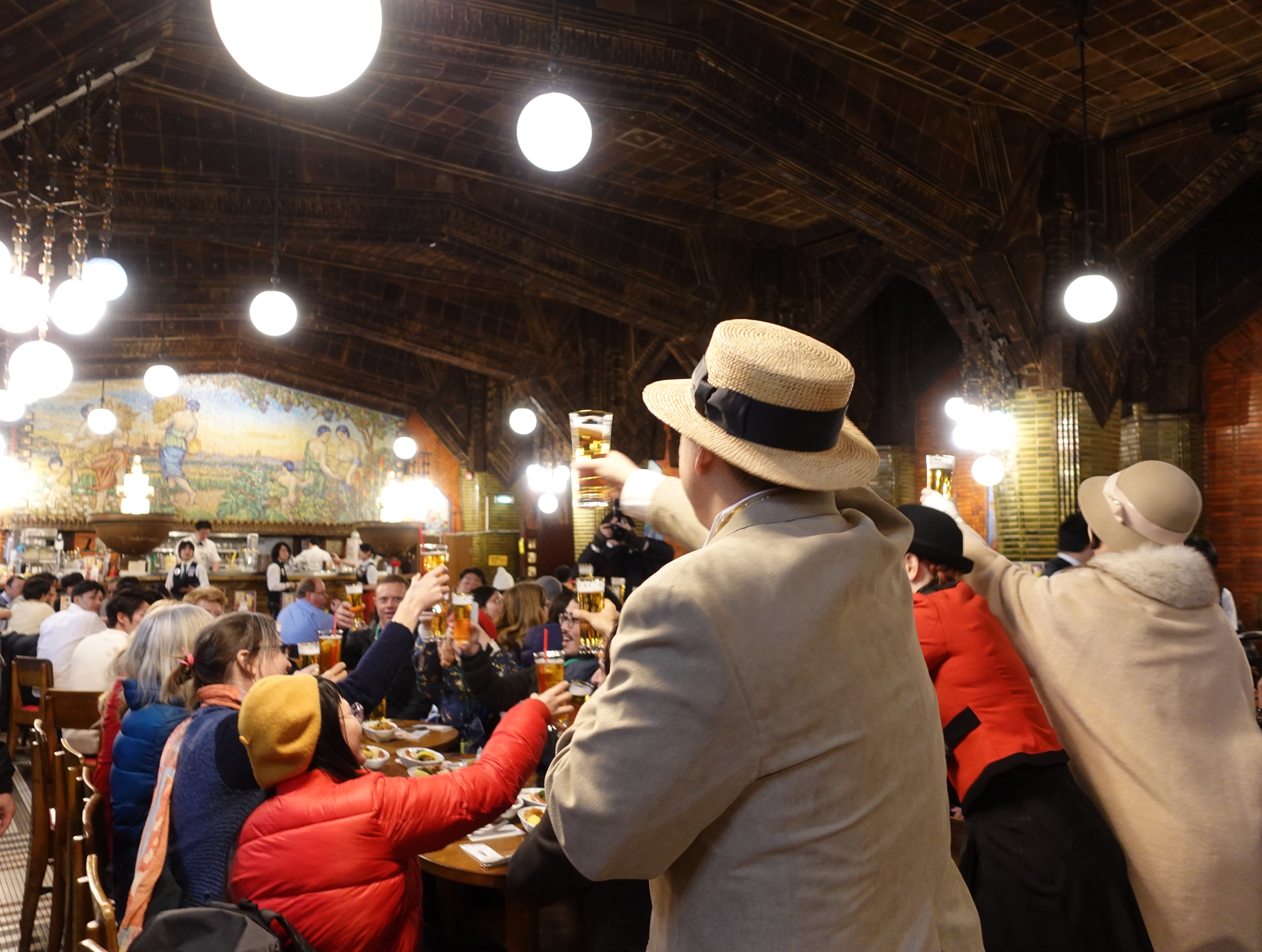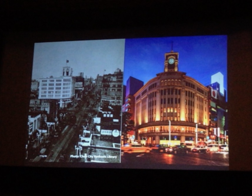 The tour begins at the Togeki Theater, a cinema in Higashi Ginza, where an actress playing the role of a guide shows footage of Ginza from the 1930s.