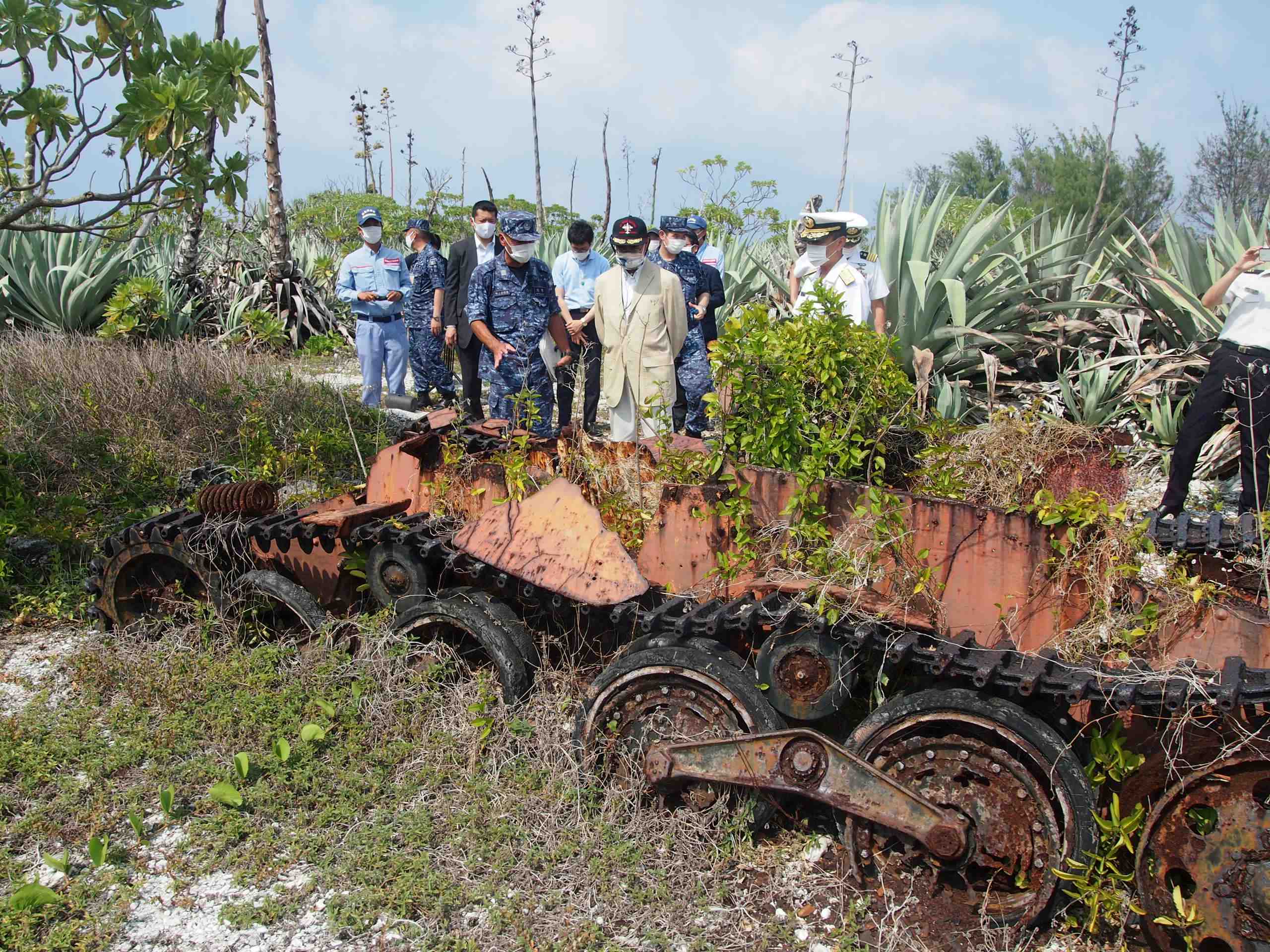 We also visited battlefields on the island, a war memorial to the dead, and the construction site for a quay where marine research ships will be moored. The 160-meter-long quay, scheduled for completion in fiscal year 2022, is a construction project of the Ministry of Land, Infrastructure, Transport and Tourism.