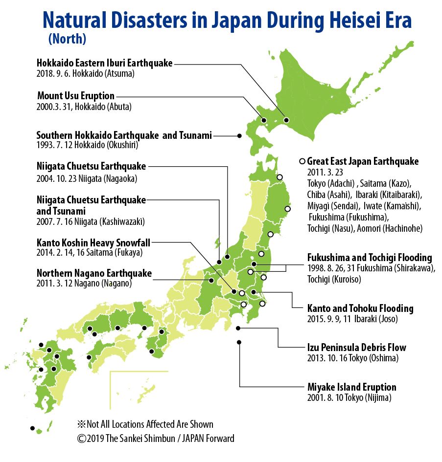 In 2018, Japan was wracked by disasters, including torrential rains that devastated a wide swath of the western regions in July, and a magnitude 6.7 earthquake that hit the northern island of Hokkaido in September. The imperial couple faithfully made visits to both regions to encourage the victims and volunteers.