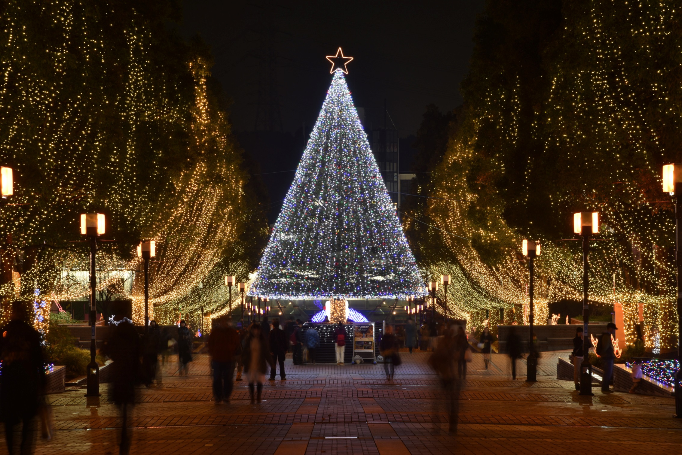 Overlooking the sea of fairy lights is a sumptuous Christmas tree, which this year was donated by Fujimi City in Nagano Prefecture.