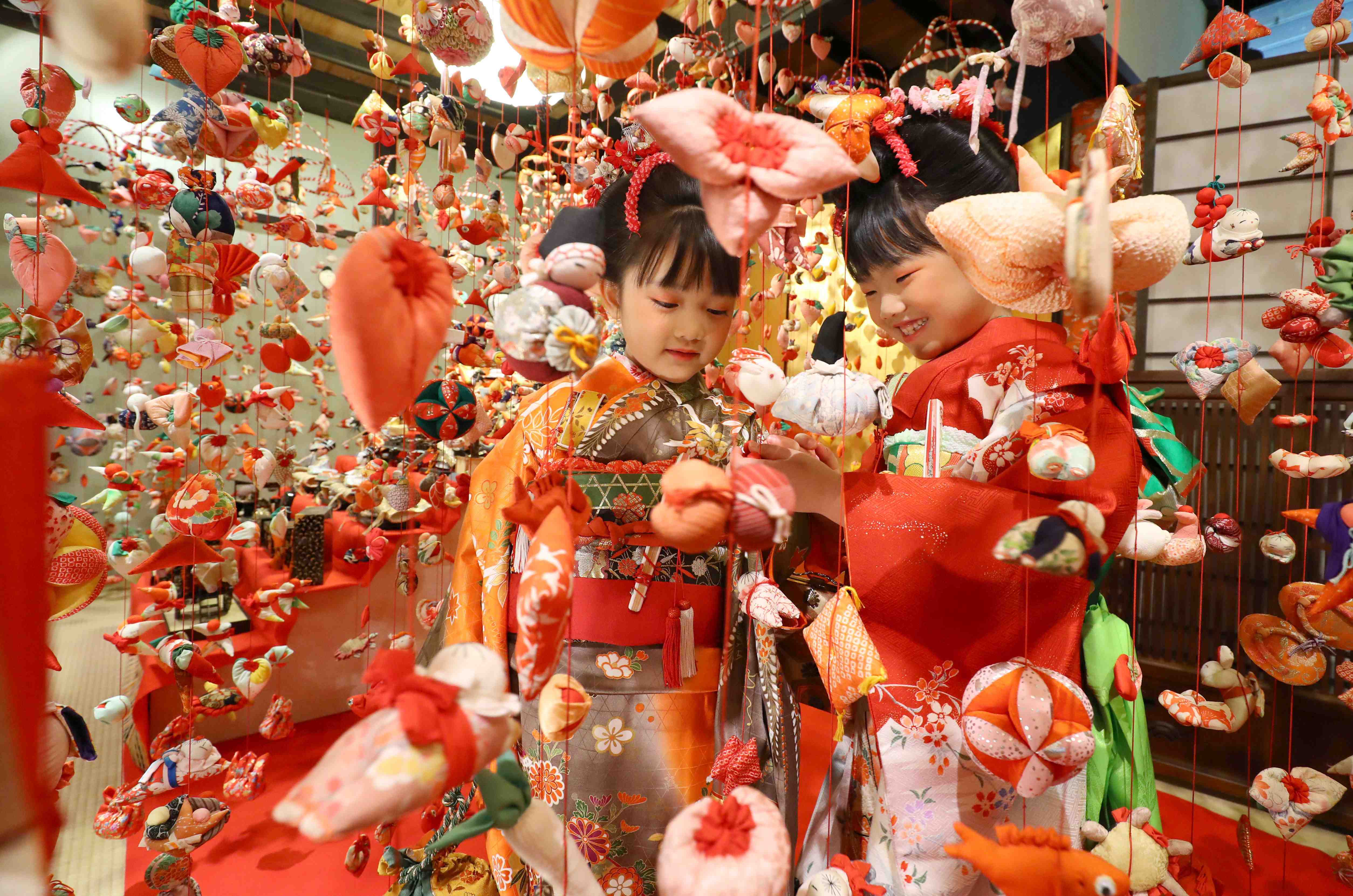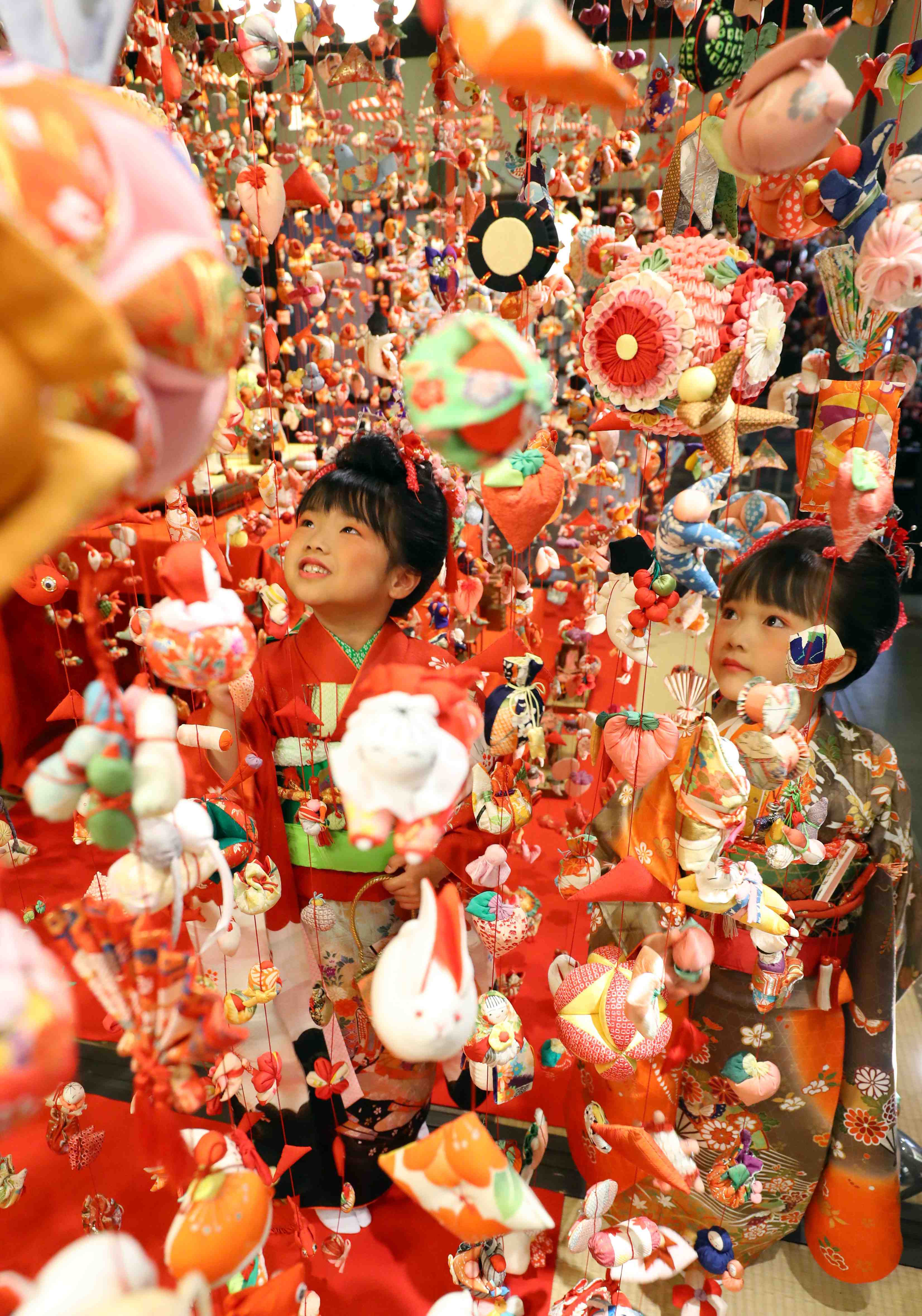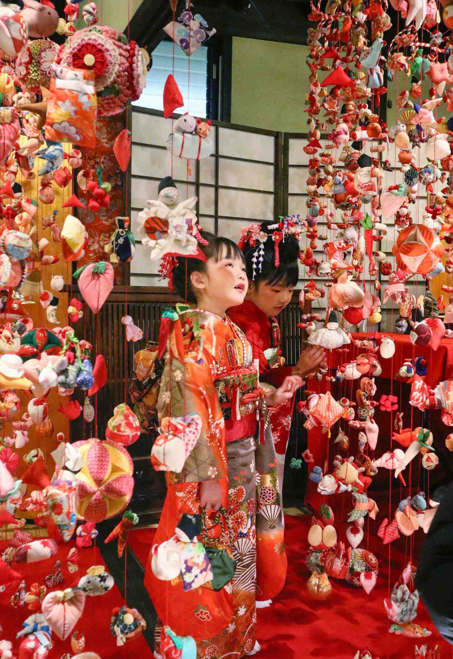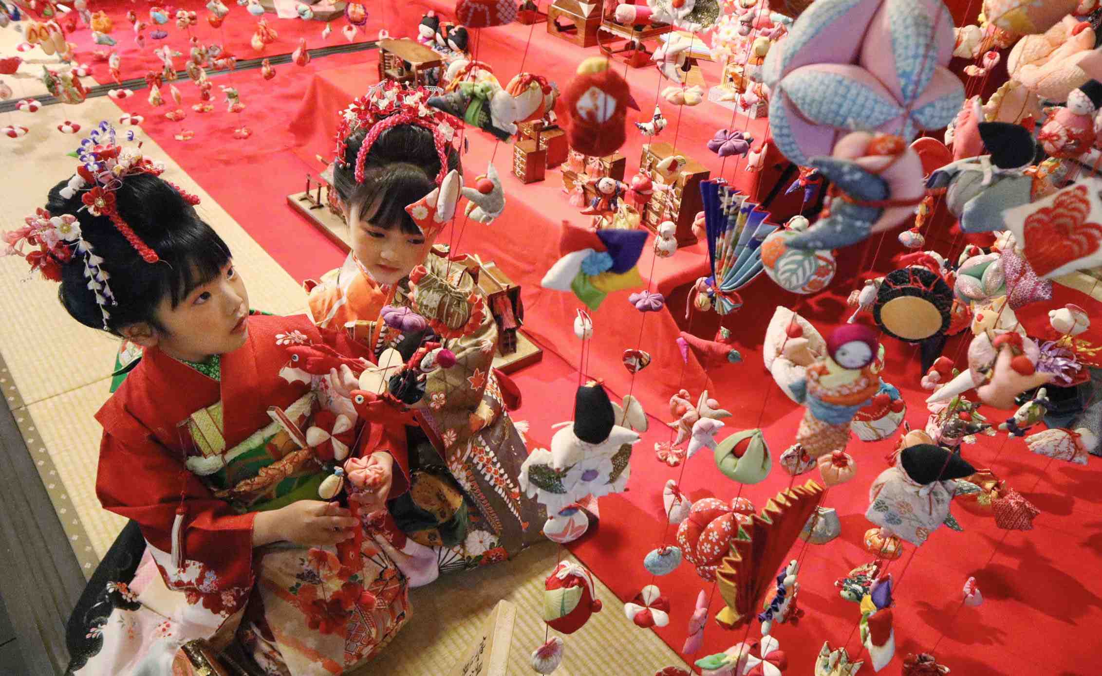 On January 19 at the Inatori Onsen in Shizuoka prefecture, the traditional “Hina Tsurushi Kazari” was opened to the public. Sankei Shimbun photographers snapped away as beautifully dressed little girls walked amidst the colorful decorations dedicated to the good health and growth of little girls.
