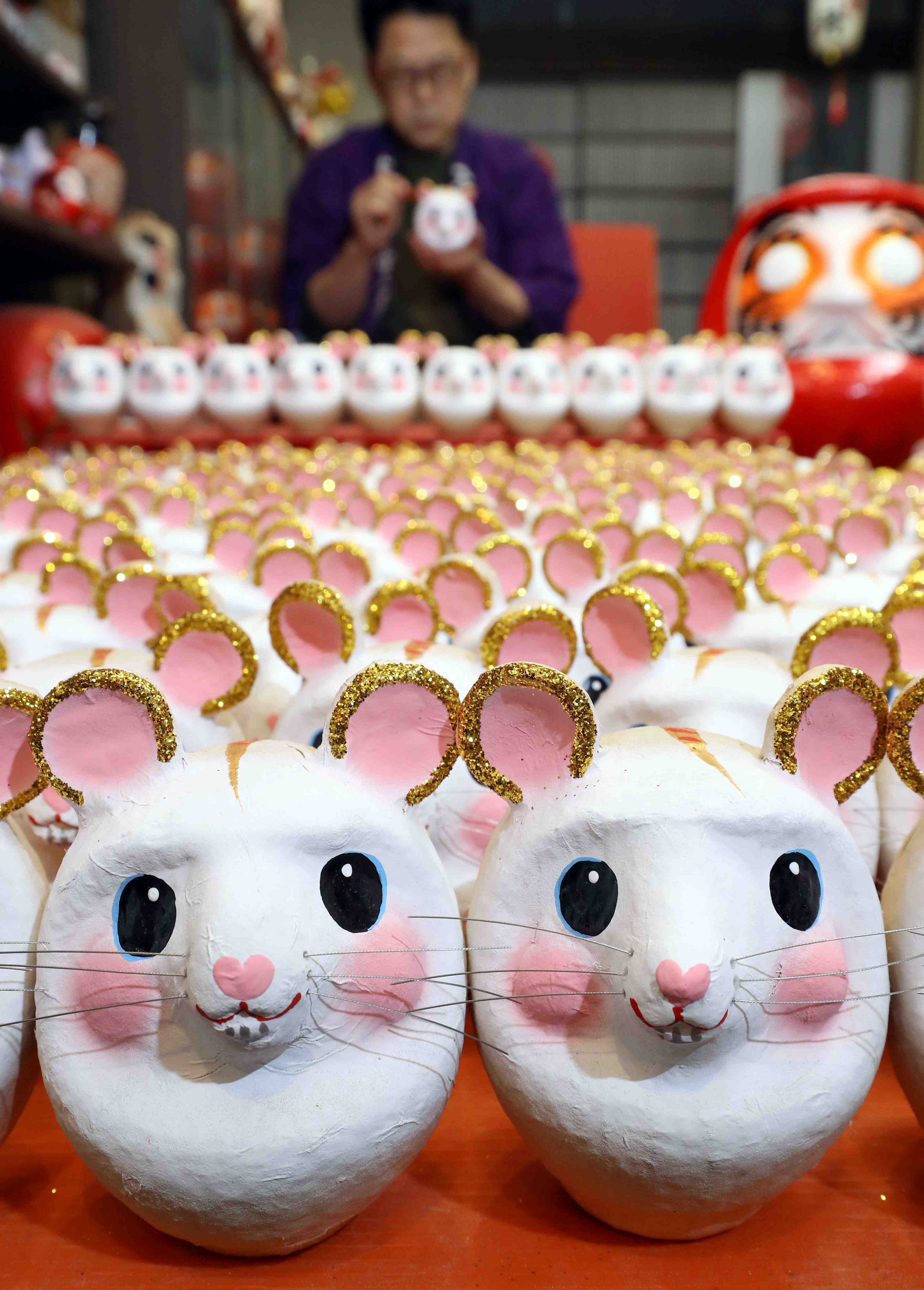 In 2019, it was the super-kitsch golden pig, while 2020 will be the year of the mouse, and the shop has been in its peak producing season for mouse darumas since late November.