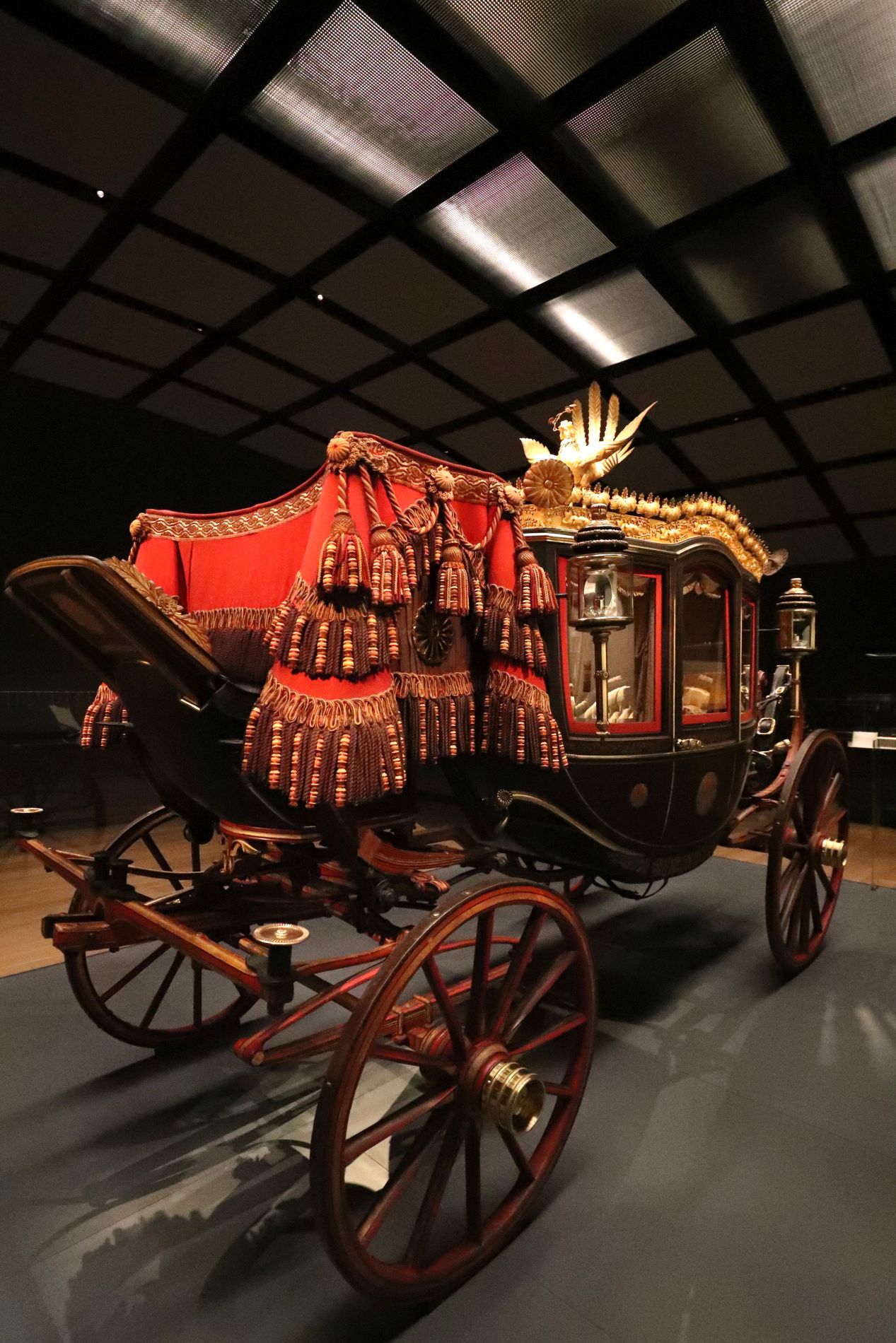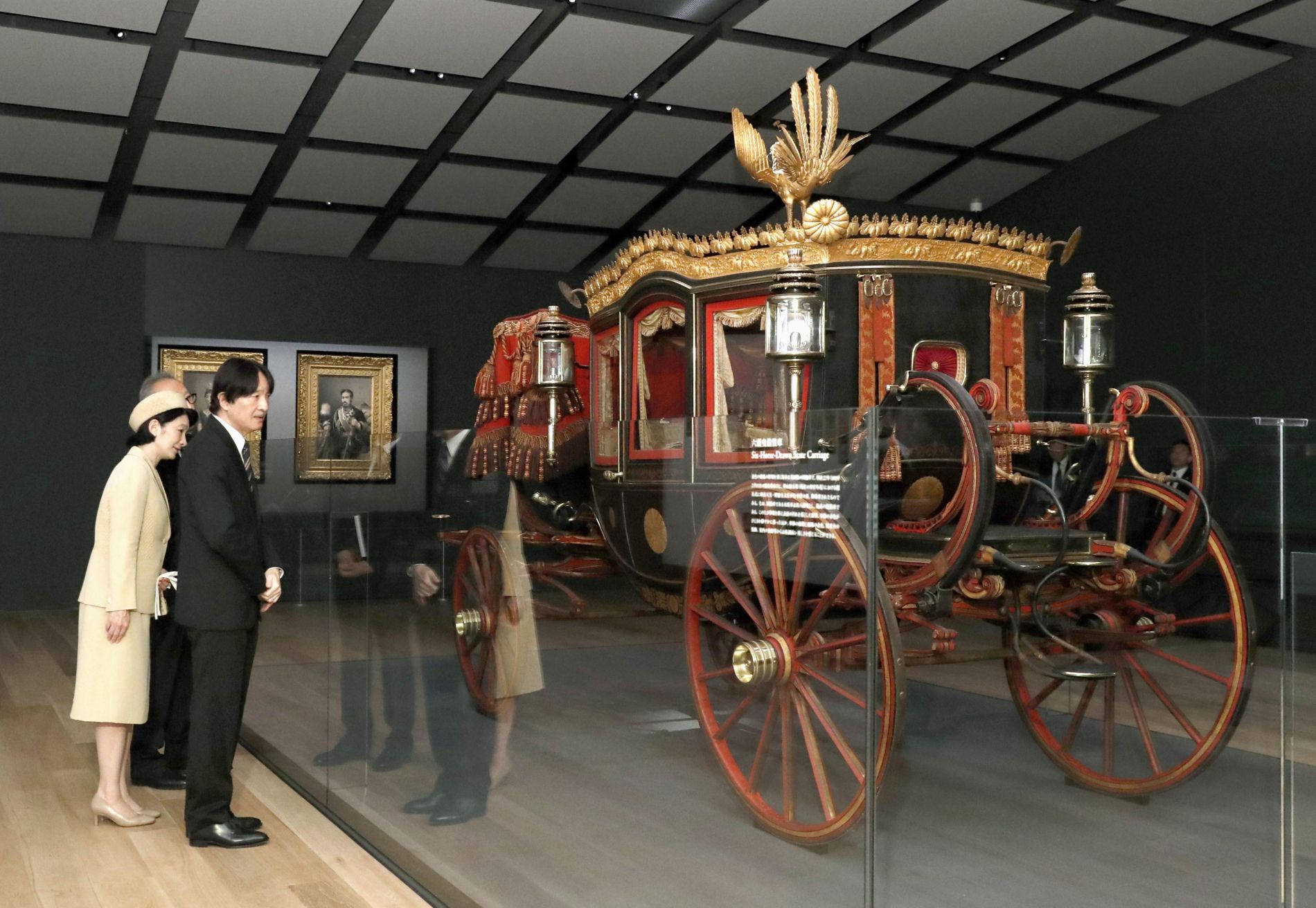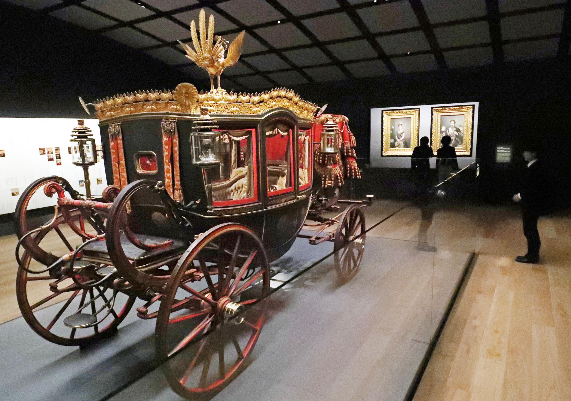 Visitors are able to admire the horse carriage used on the occasion of the proclamation of the Meiji Constitution more than 120 years ago. This was the Japanese constitution that preceded the post-war constitution written by Allied Occupation officials.
