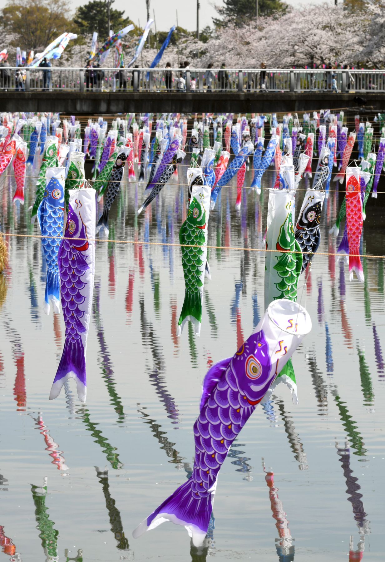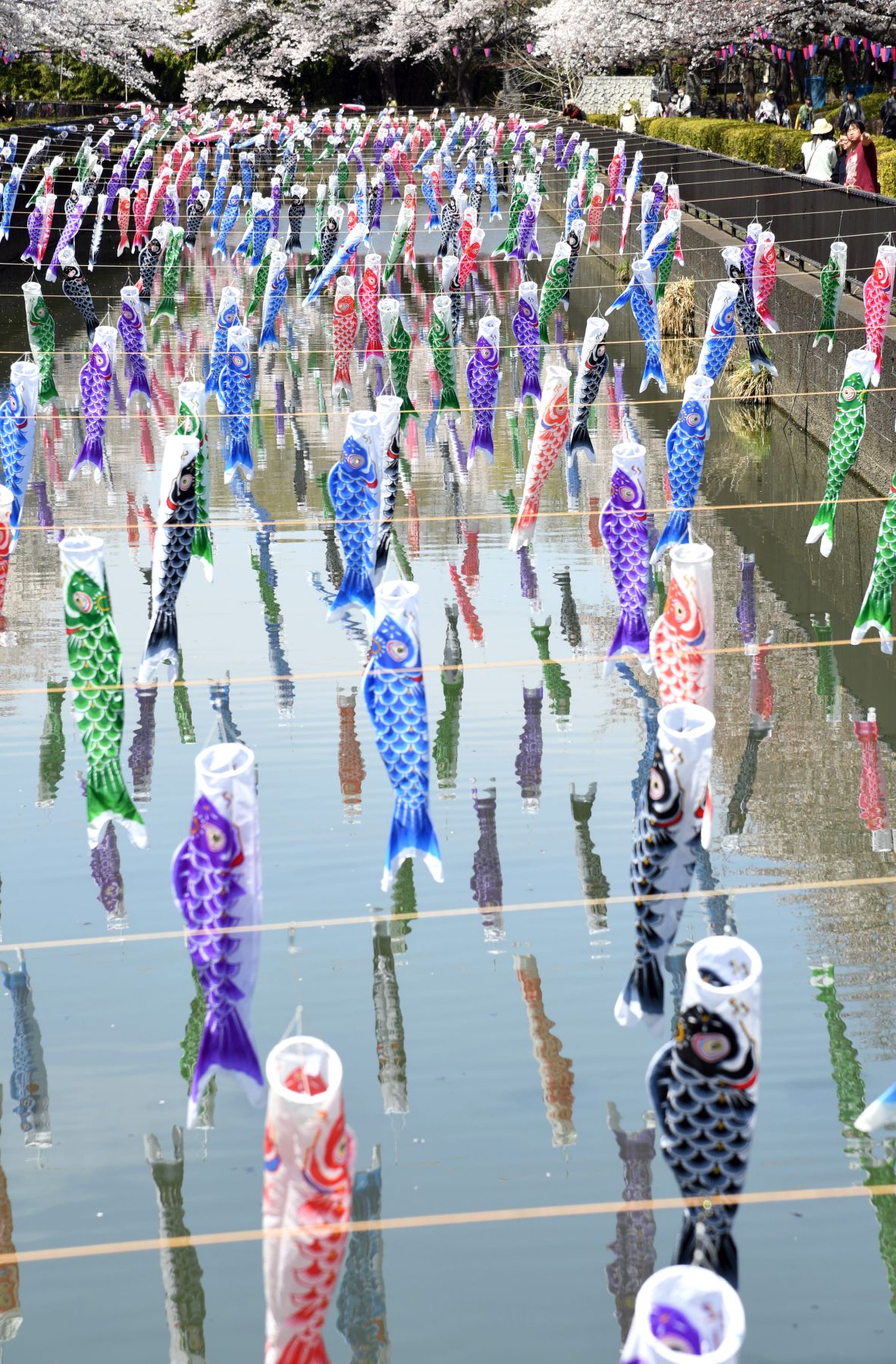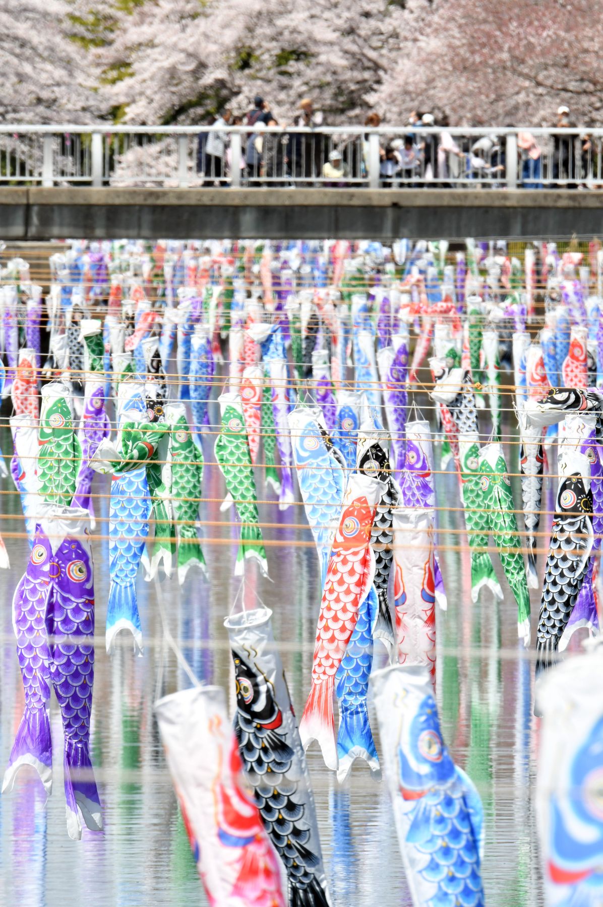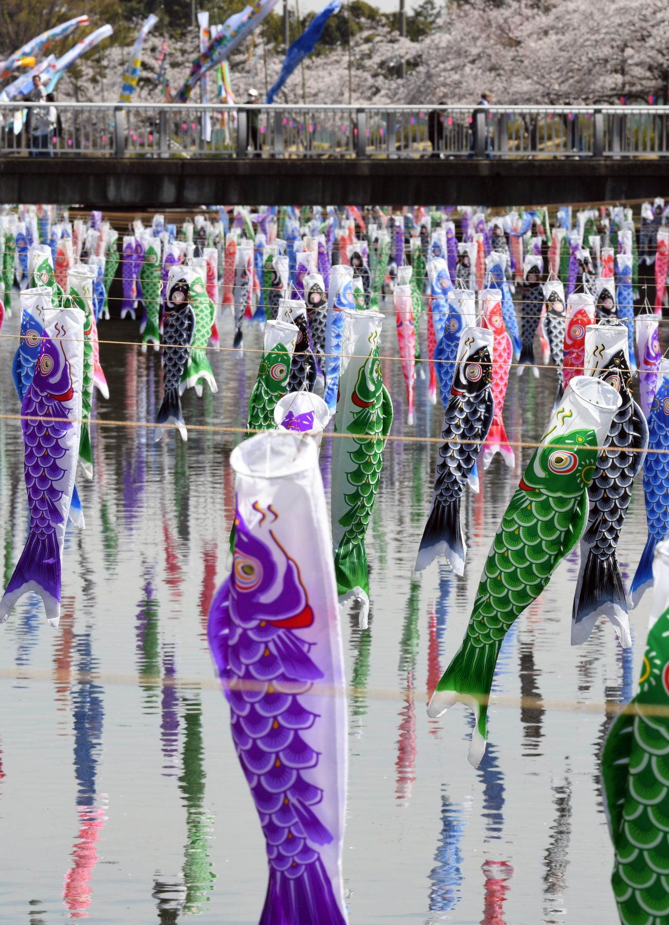 As the spring breeze blows, thousands of multi-colored carp streamer cutouts flutter in the light wind.