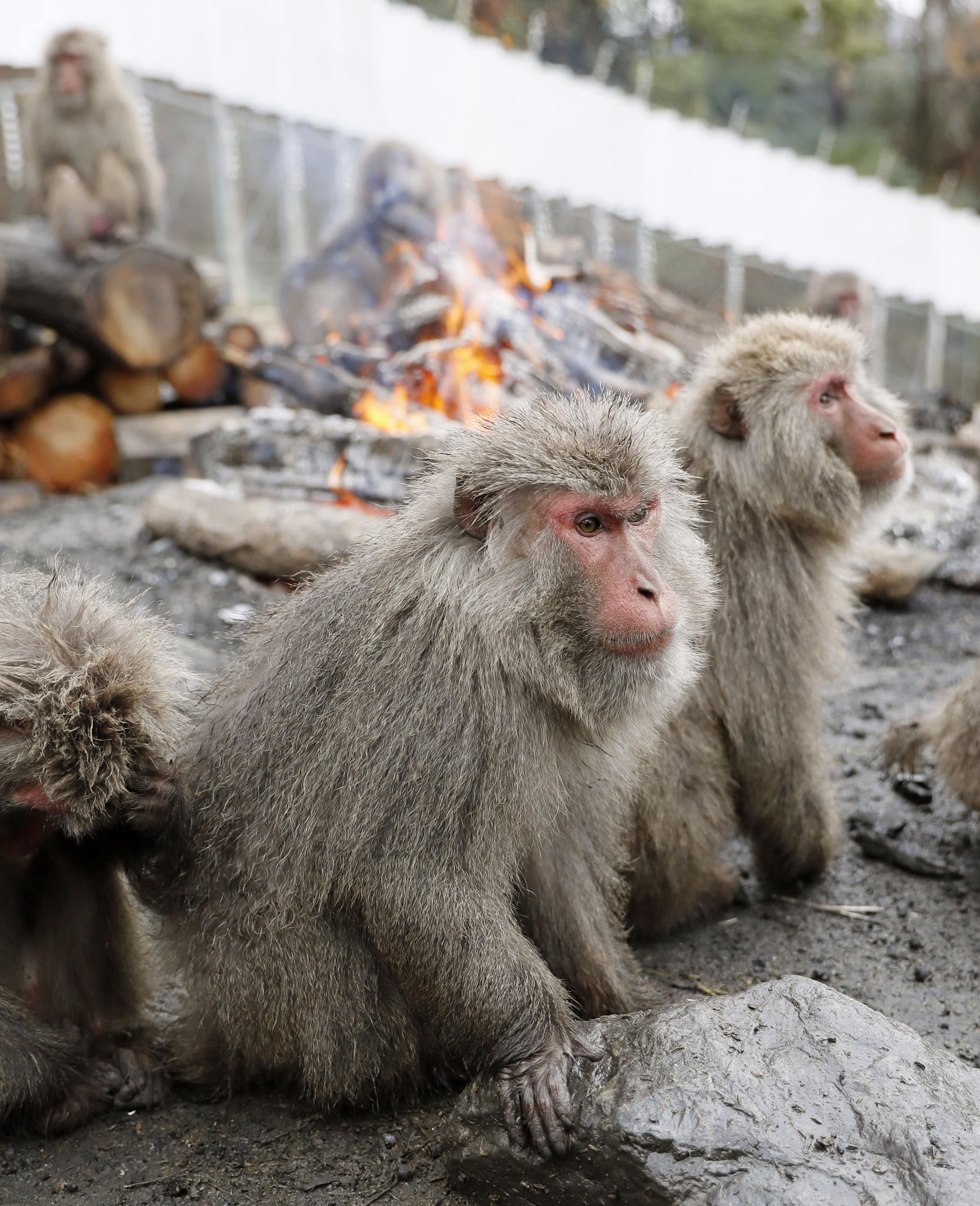 It was cold and rainy on the day the Sankei Shimbun reporter visited, and the monkeys looked blissful as they enjoyed the soft heat while trying to warm up next to the flames.
