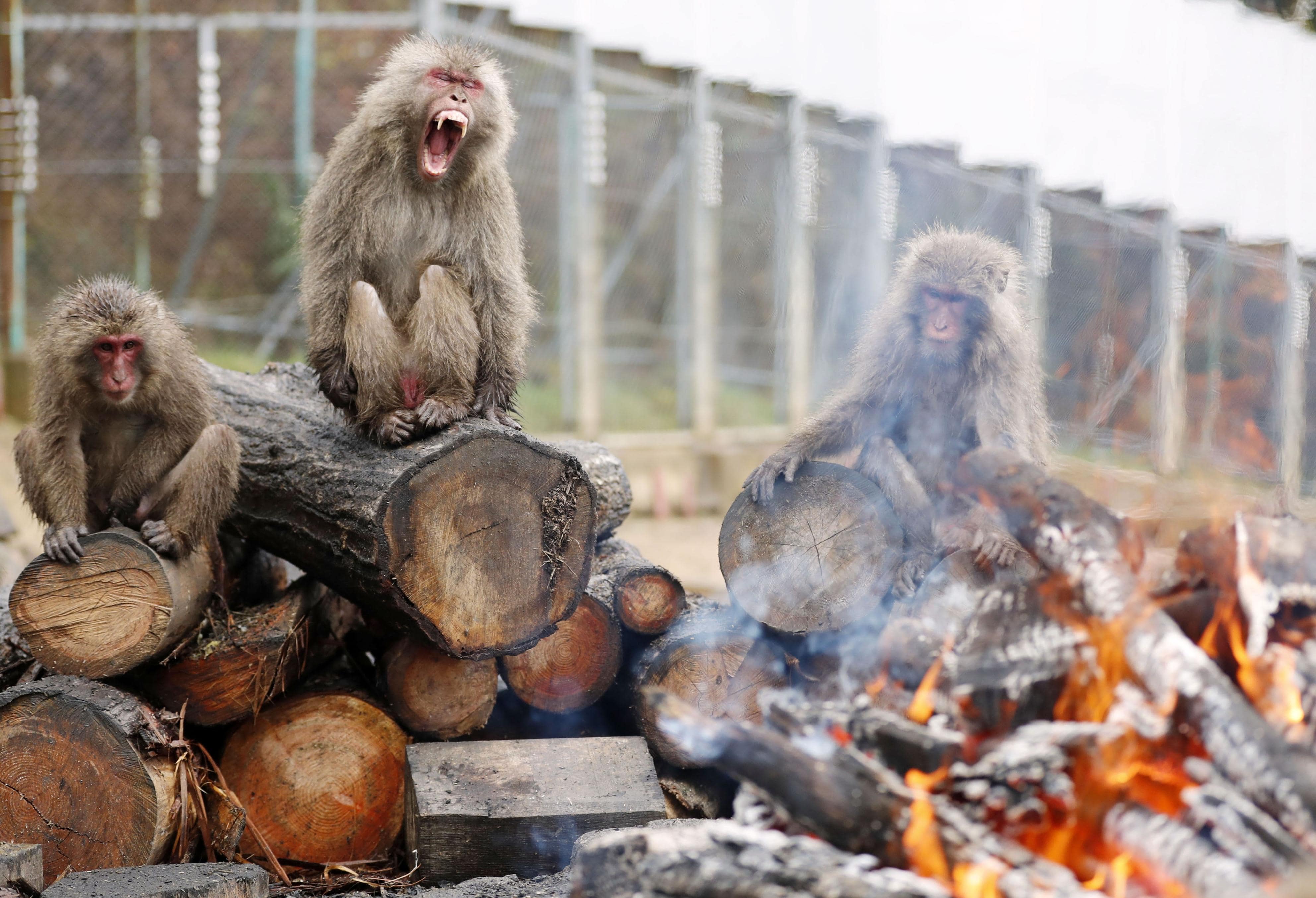 The fire crackles in the chilly winter air and they gather around the warm embers of the flame. Who are “they,” you ask? Monkeys!