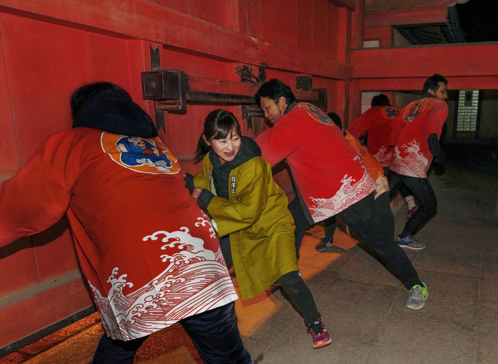 As the clock strikes 6 A.M., the taiko drum reverberates. The gates of the shrine, kept shut until then by a couple of volunteers, are swung open by the enthusiastic crowd. A hoard of luck-seeking men — and sometimes even women — hurl themselves towards the main shrine.
