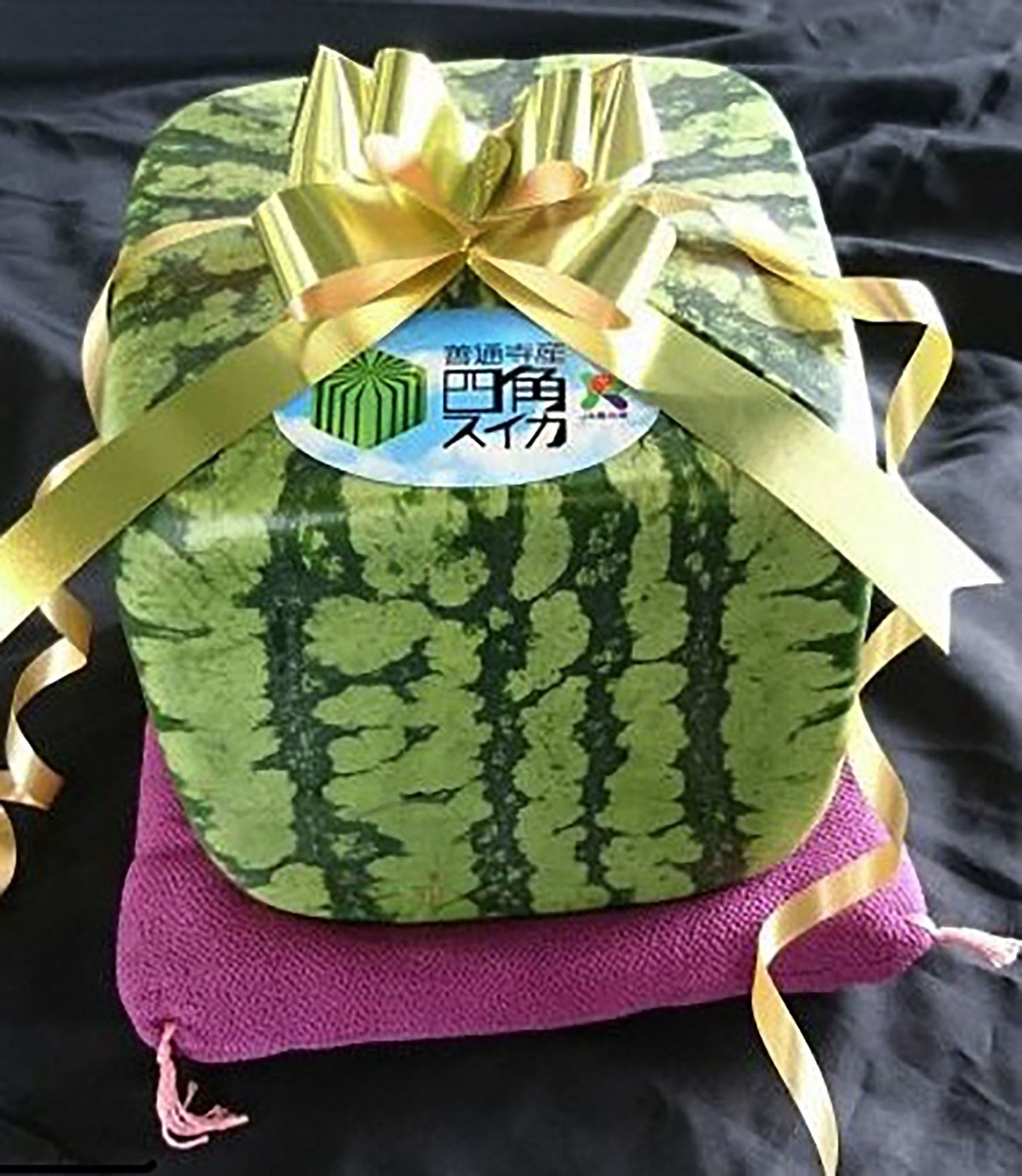 The practice of raising square watermelon started 50 years ago as a way of garnering publicity for the region. Today, there are still nine farmhouses which produce the fruit. Each precious fruit costs more than ¥10,000 JPY (about $93 USD). It is expected that 600 will be raised between now and the end of July.
