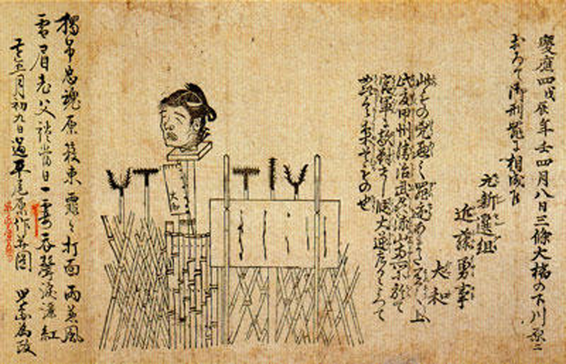 The opening of Japan to the West also gave rise to the imperialist and anti-foreigner movement, Sonno joi (Revere the Emperor and expel the barbarians). By the spring of 1863, the wave of resentment towards the Tokugawa Bakufu had reached its peak, and bands of ronin (masterless samurai) were roaming the streets of the imperial capital of Kyoto in a rampage of murder and assassination. Kyoto was described as a “sea of blood.” In an effort to strike fear into the hearts of all those who opposed the imperial loyalists, the heads of the victims would be displayed on poles along the riverbanks.