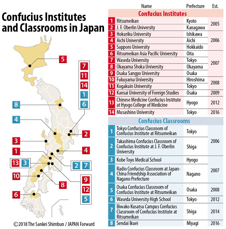 Japan currently has Confucius Institutes in 14 private universities as well as eight Confucius Classrooms across elementary schools, middle schools, and high schools.