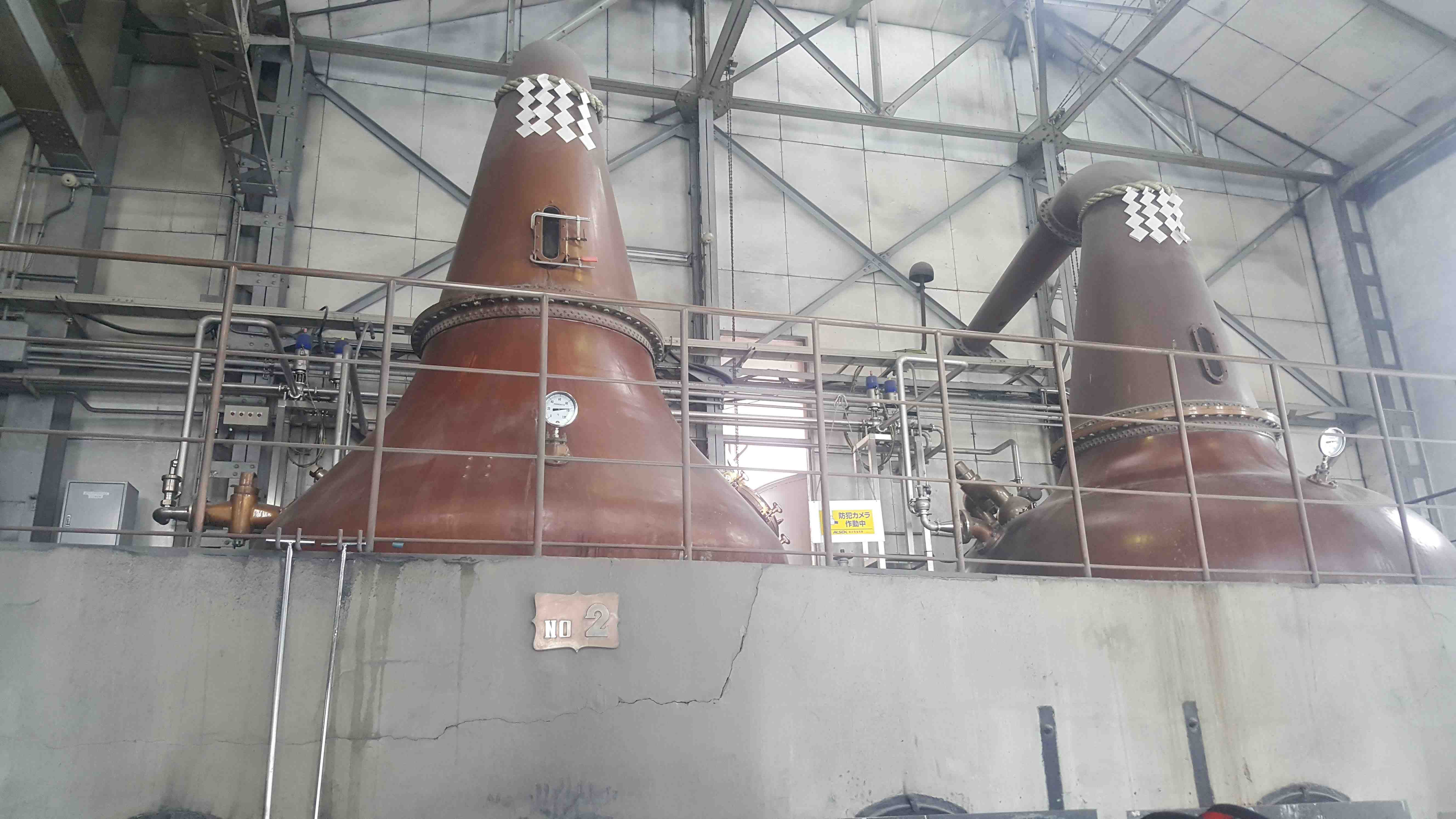 The process is still very much the same as that which Taketsuru learned at Longmorn Distillery in Scotland. Up to this day, Nikka has kept with the tradition. It is now the last whisky distillery in the world that still works with coal fire. Each of the copper cauldrons is adorned with shide, white, cross-folded paper strips to help ward off evil spirits and keep the whisky pure. It was Taketsuru who continued this tradition from his family’s sake brewery in Hiroshima.