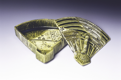 The exhibition offers many perceptions of the fan: the fan itself, byobu folding screens and fusuma sliding panels adorned with fan illustrations, paintings of dancers waving fans, and pottery and lacquerware shaped like a fan. The exhibition concludes by showing how the historical island Dejima in Nagasaki also resembled the fan.