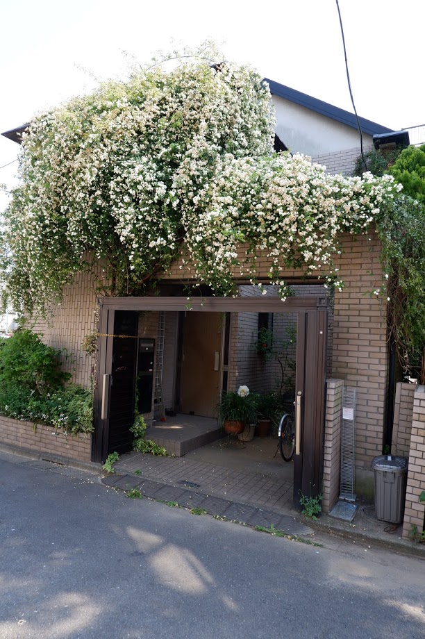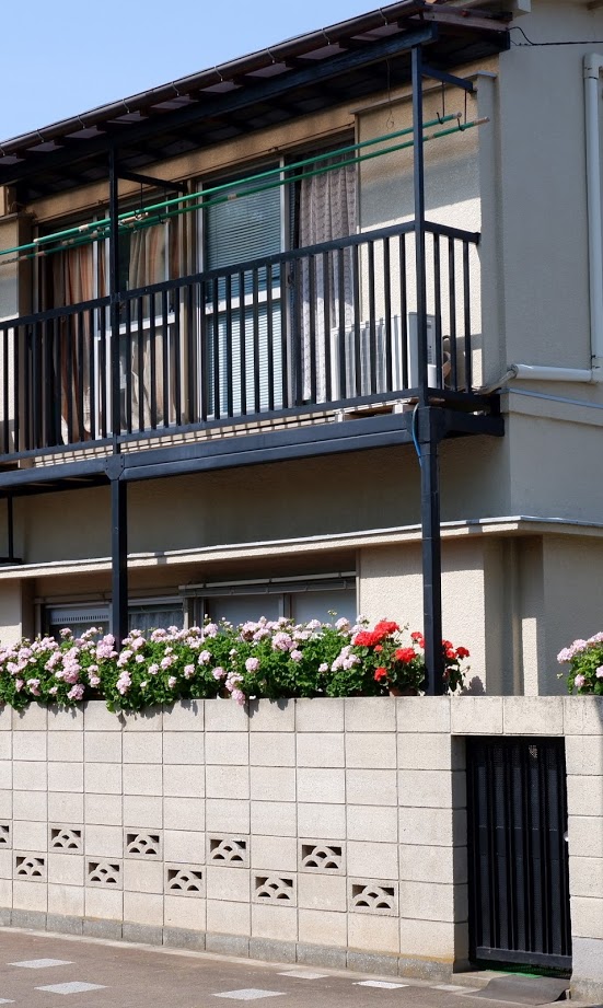 Within the 23 wards of Tokyo relatively few homeowners have even micro-sized gardens, but many still find ways to nurture flowering plants that put on an impressive spring display. Fence top flowers are quite common.