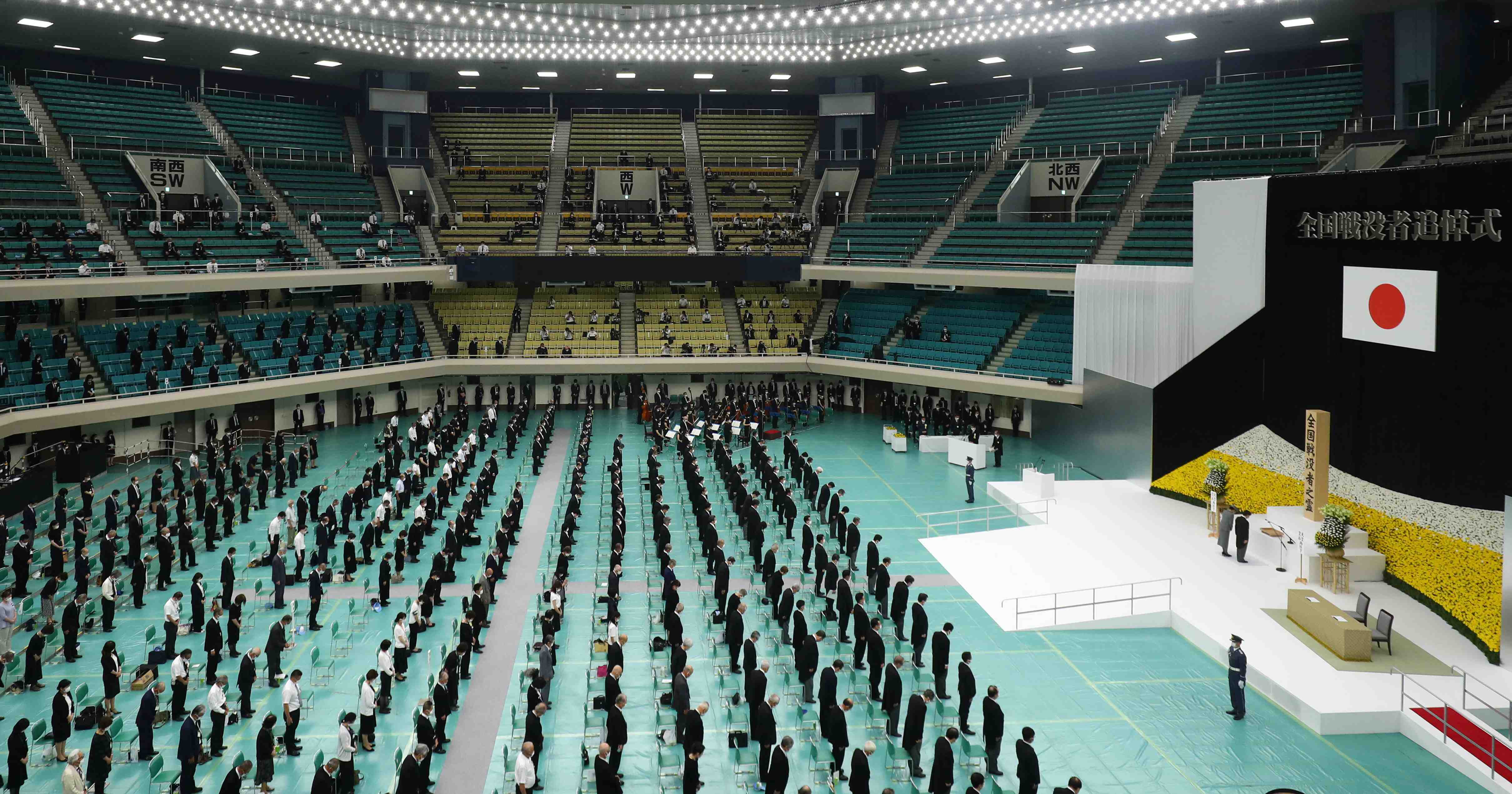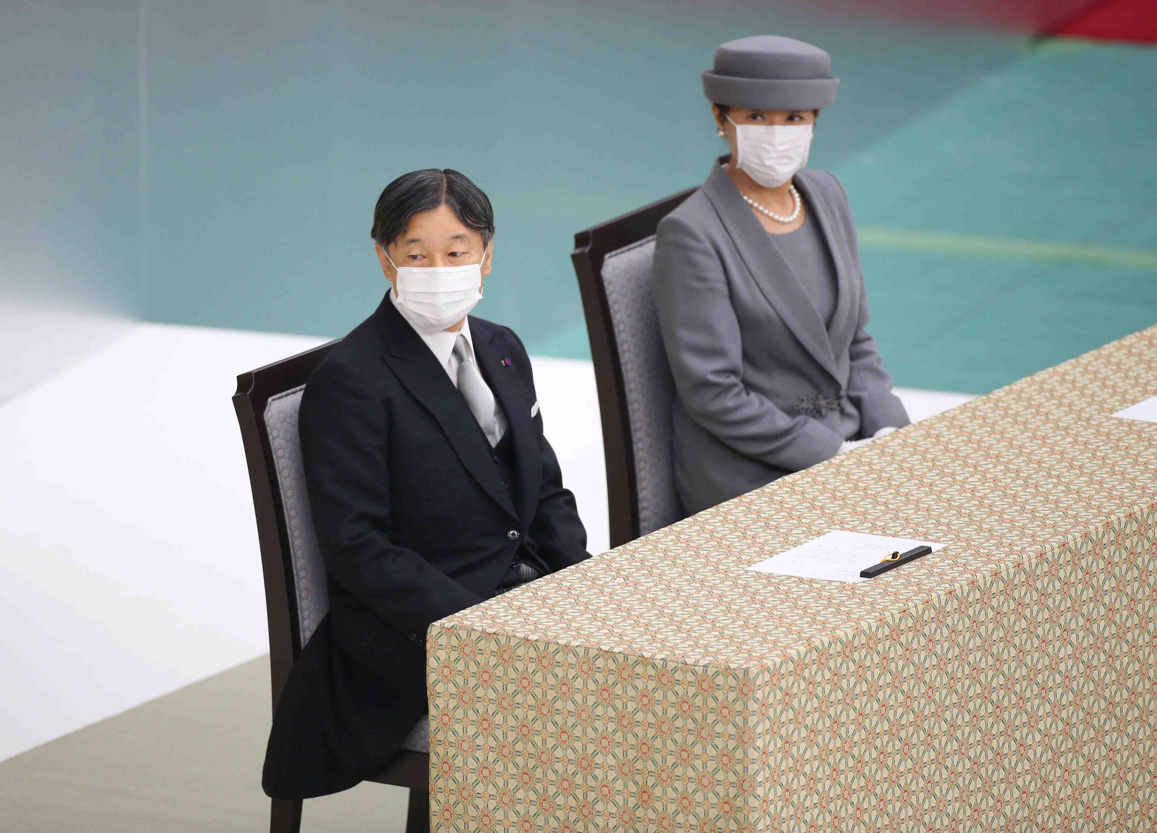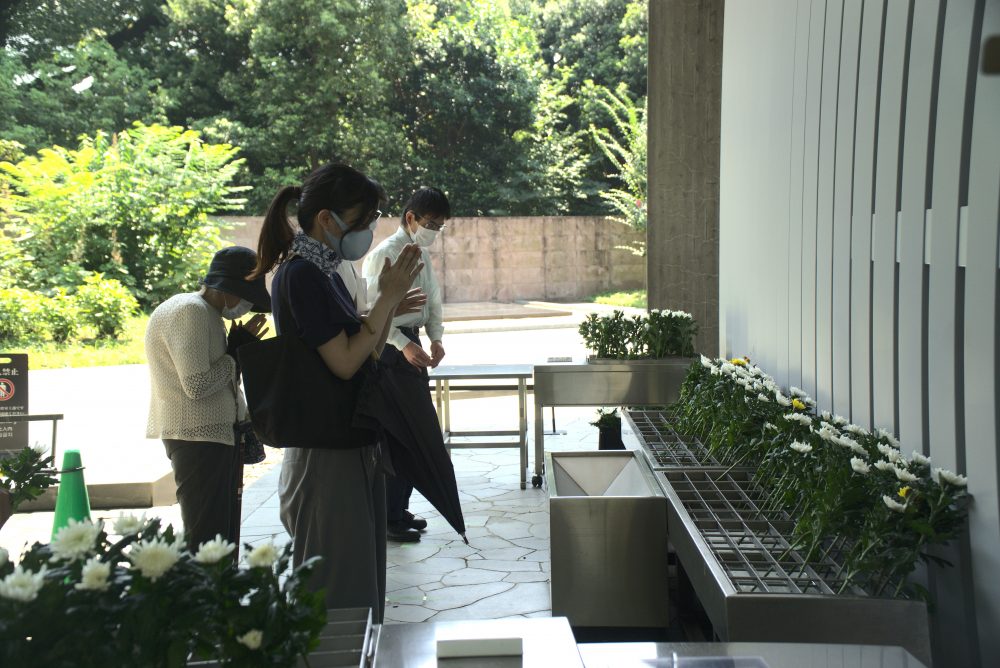 This year, Emperor Naruhito and Empress Masako joined Prime Minister Abe and other other politicians, dignitaries, and guests on the same date and hour, for a ceremony marking the 75th year of peace following the end of the war at the Nippon Budokan, a large arena near the Imperial Palace. Due to the COVID-19 pandemic, the attendance for the speeches and respectful minute of silence was shrunk to less than a 10th of its capacity, from over 14,000 to 540 this year.